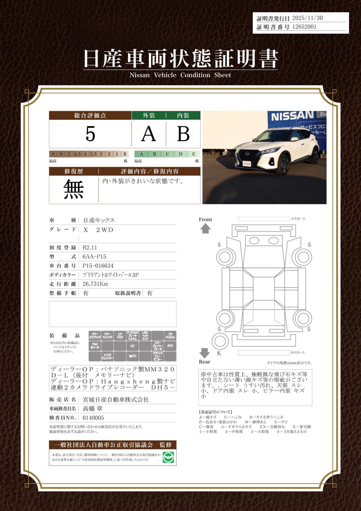 車両保証(キックス X:宮城日産自動車(株) カートピア扇町)