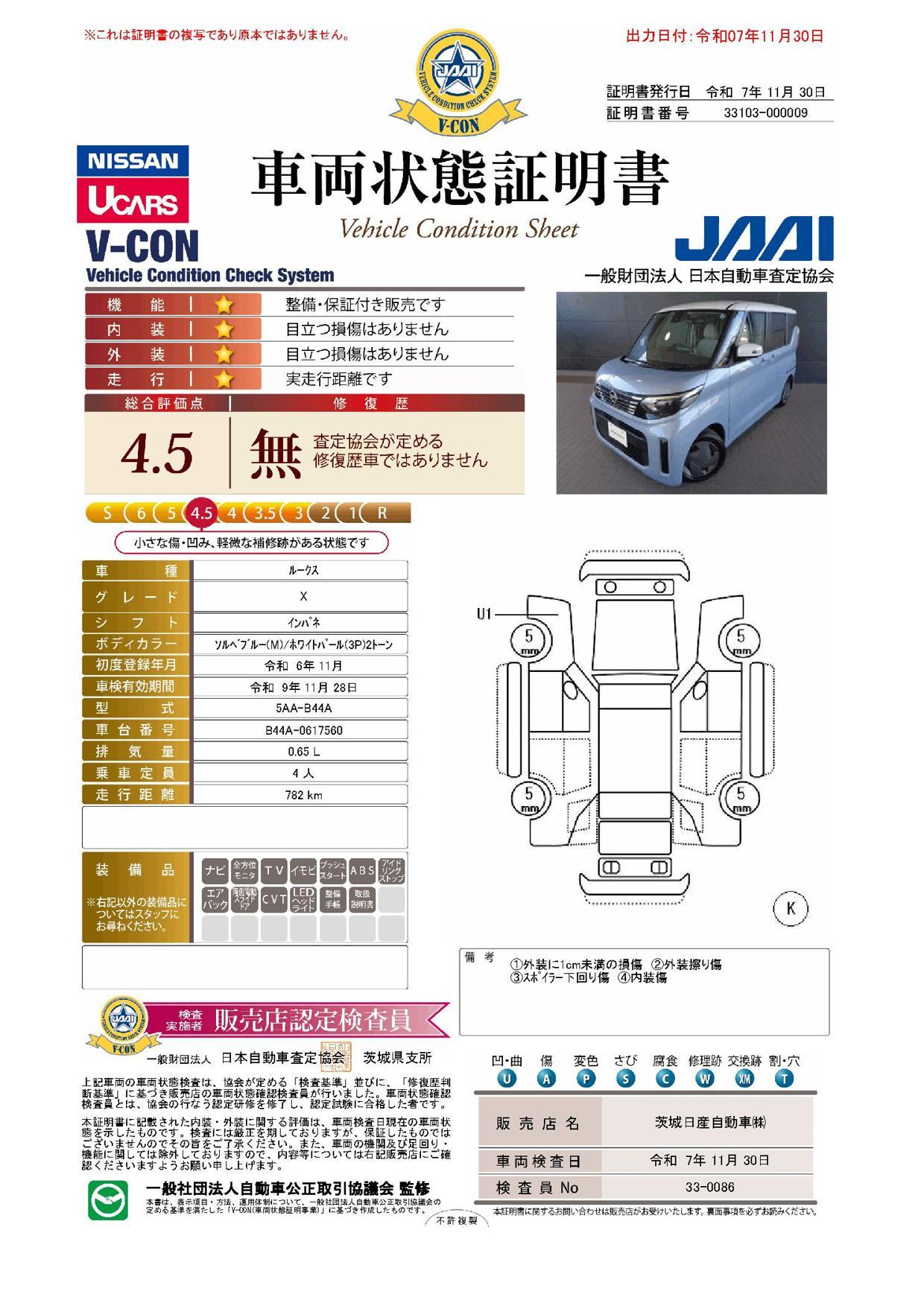 車両保証(ルークス X:茨城日産自動車(株)U-Cars水戸千波店)