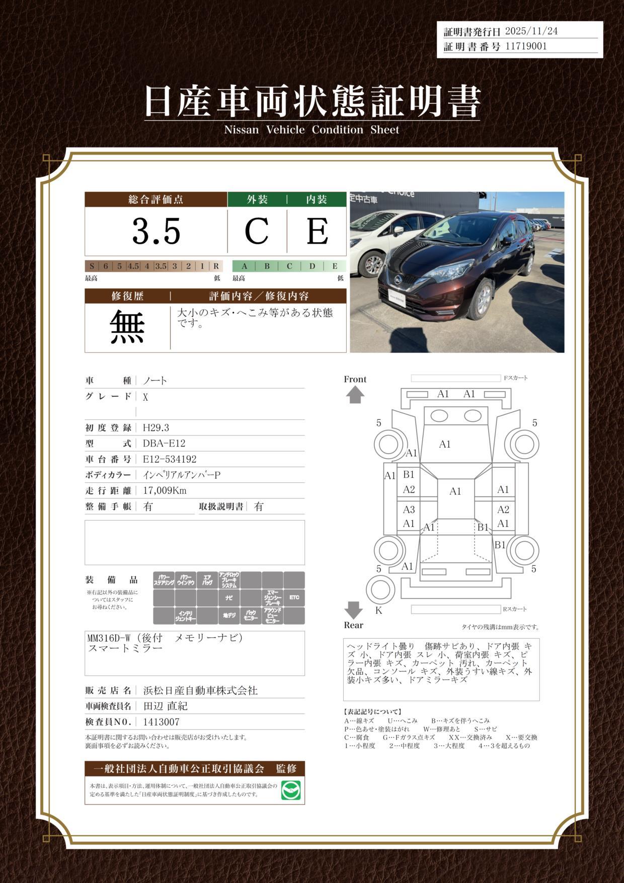 車両保証(ノート X:浜松日産自動車(株) Ucars掛川店)