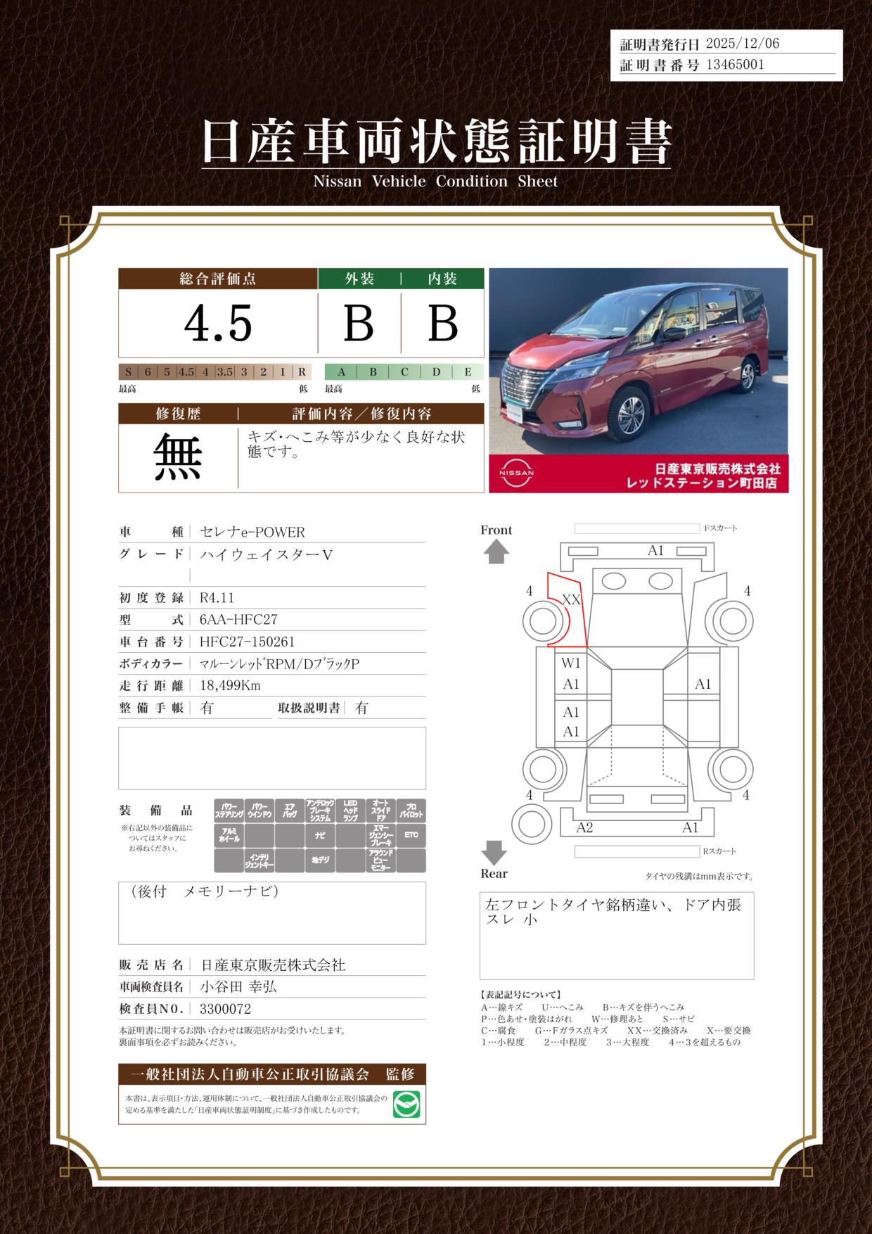 車両保証(セレナ e-パワー ハイウェイスターV:日産東京販売(株) レッドステーション町田店)