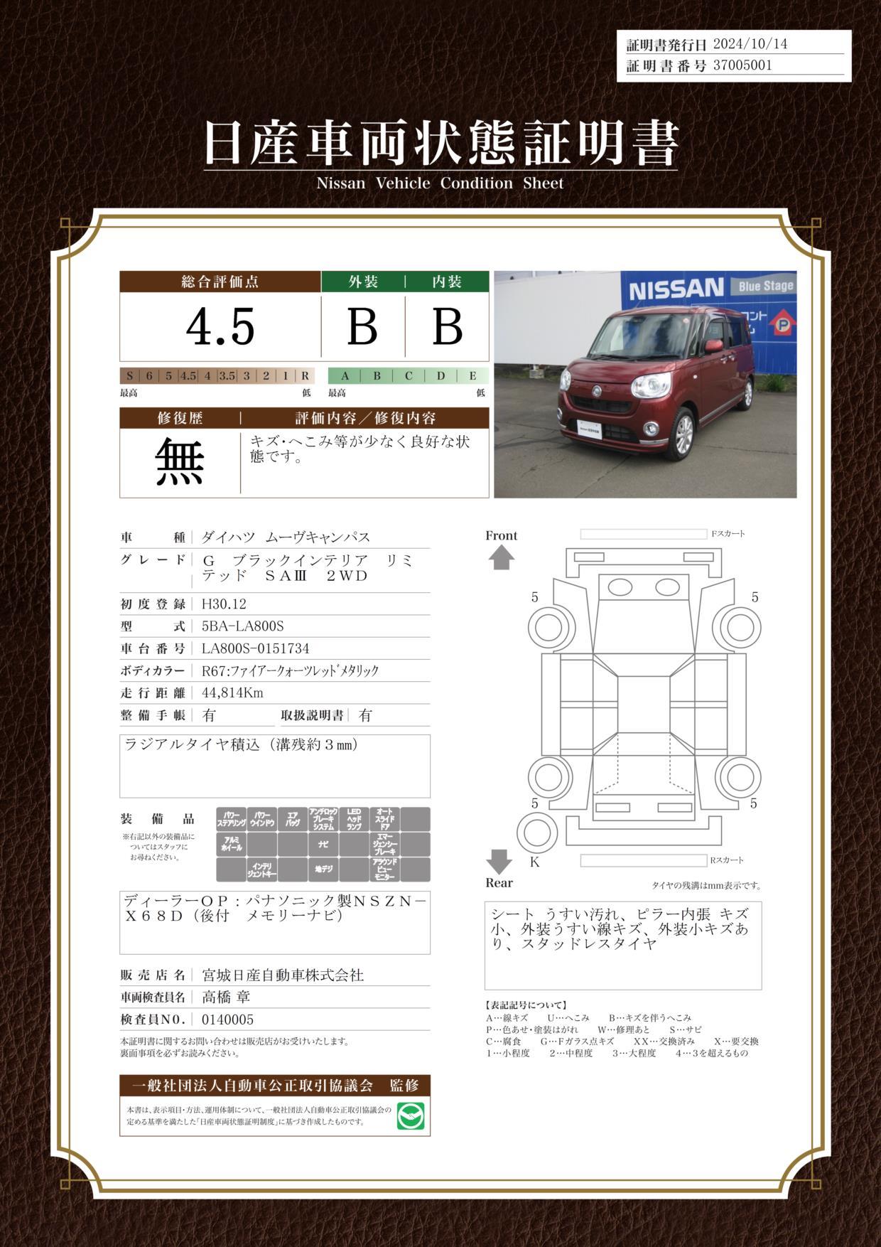 車両保証(ムーヴキャンバス Gブラックインテリアリミテッド SAIII:宮城日産自動車(株) カートピア名取)