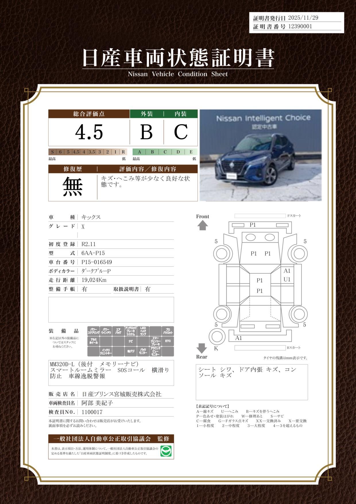 車両保証(キックス X:日産プリンス宮城販売(株) 卸町中古車センター )