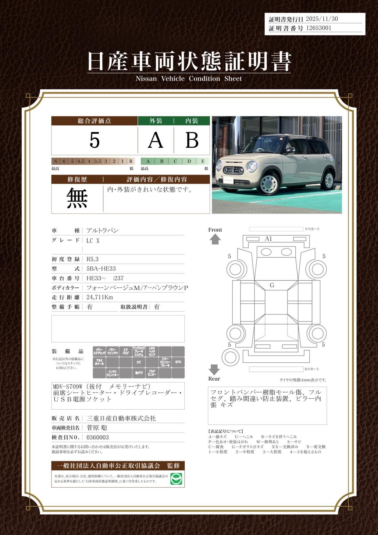 車両保証(アルトラパンLC X:三重日産自動車(株) 鈴鹿中央通り店)