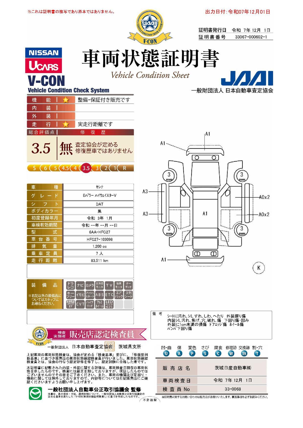 | 車両状態評価書 | ※クリックすると開きます![]() |