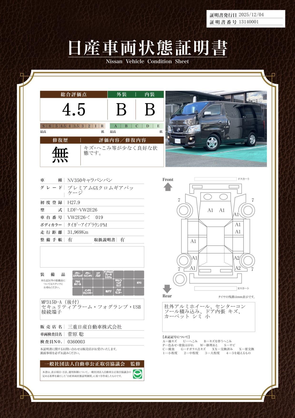車両保証(NV350キャラバンバン ロングプレミアムGXターボ クロムギアパッケージ:三重日産自動車(株) 桑名江場店)