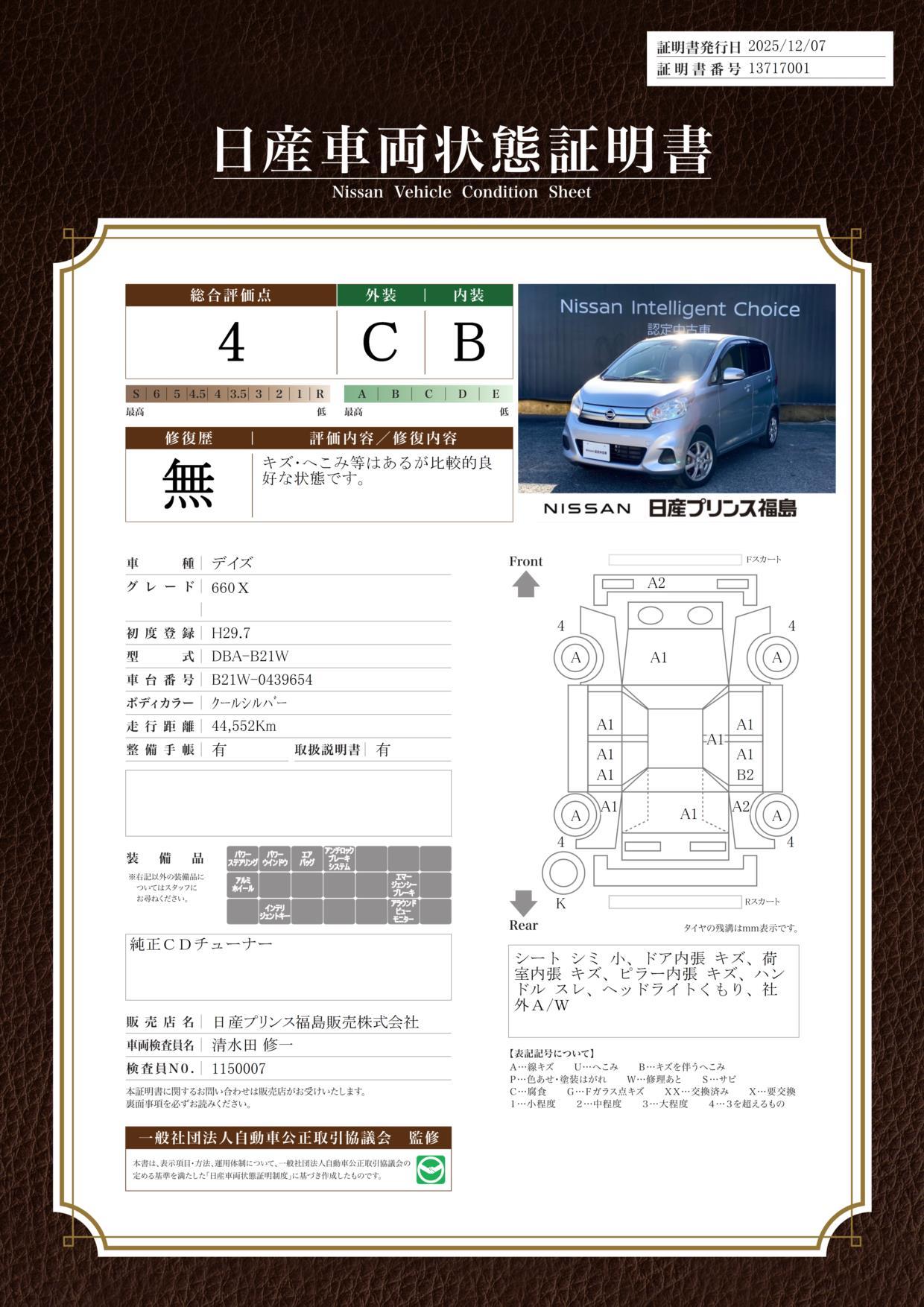 車両保証(デイズ X:日産プリンス福島販売(株)ユー.comあさか)