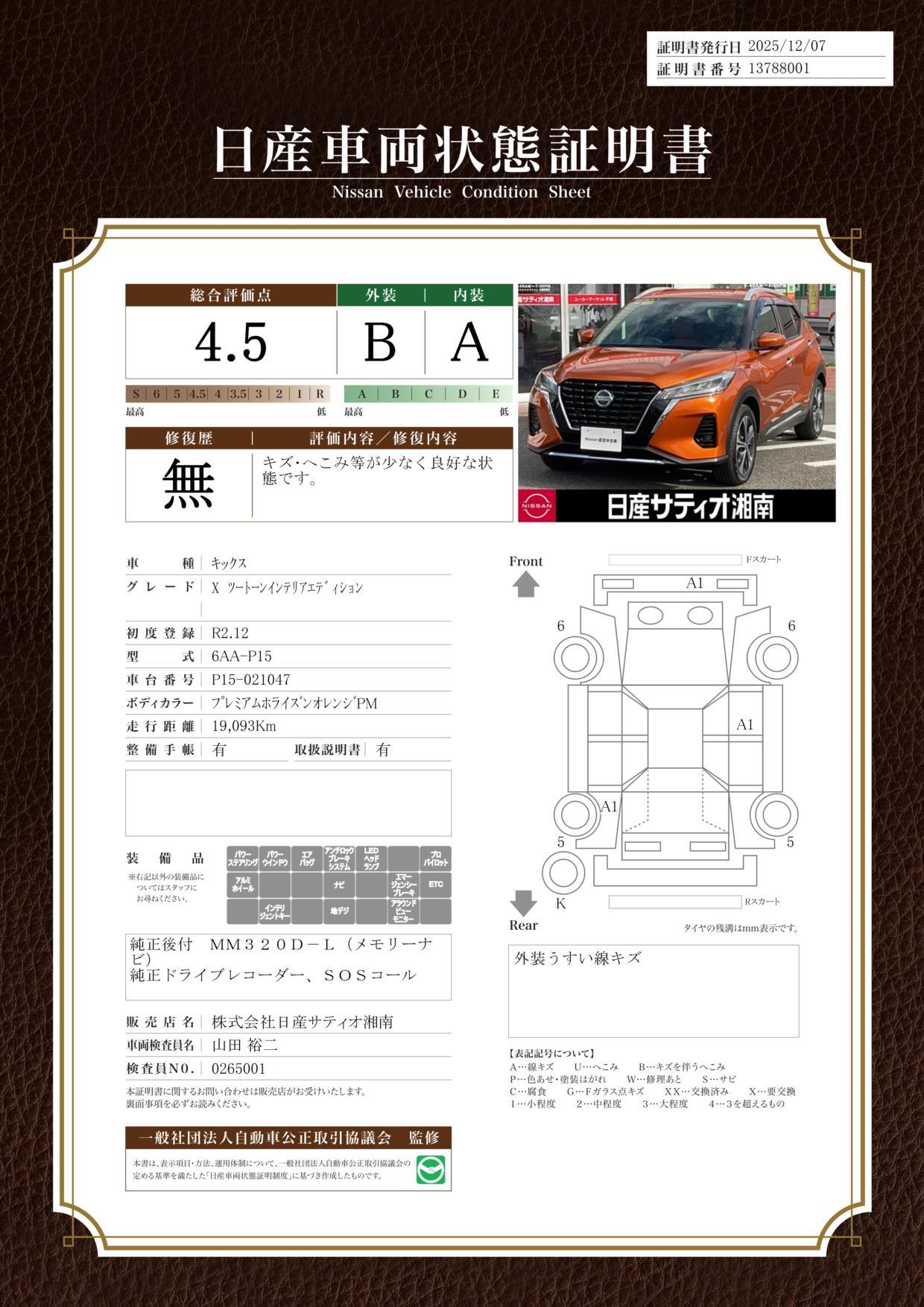 車両保証(キックス X ツートーンインテリアエディション:(株)日産サティオ湘南 ユーカーマーケット平塚)