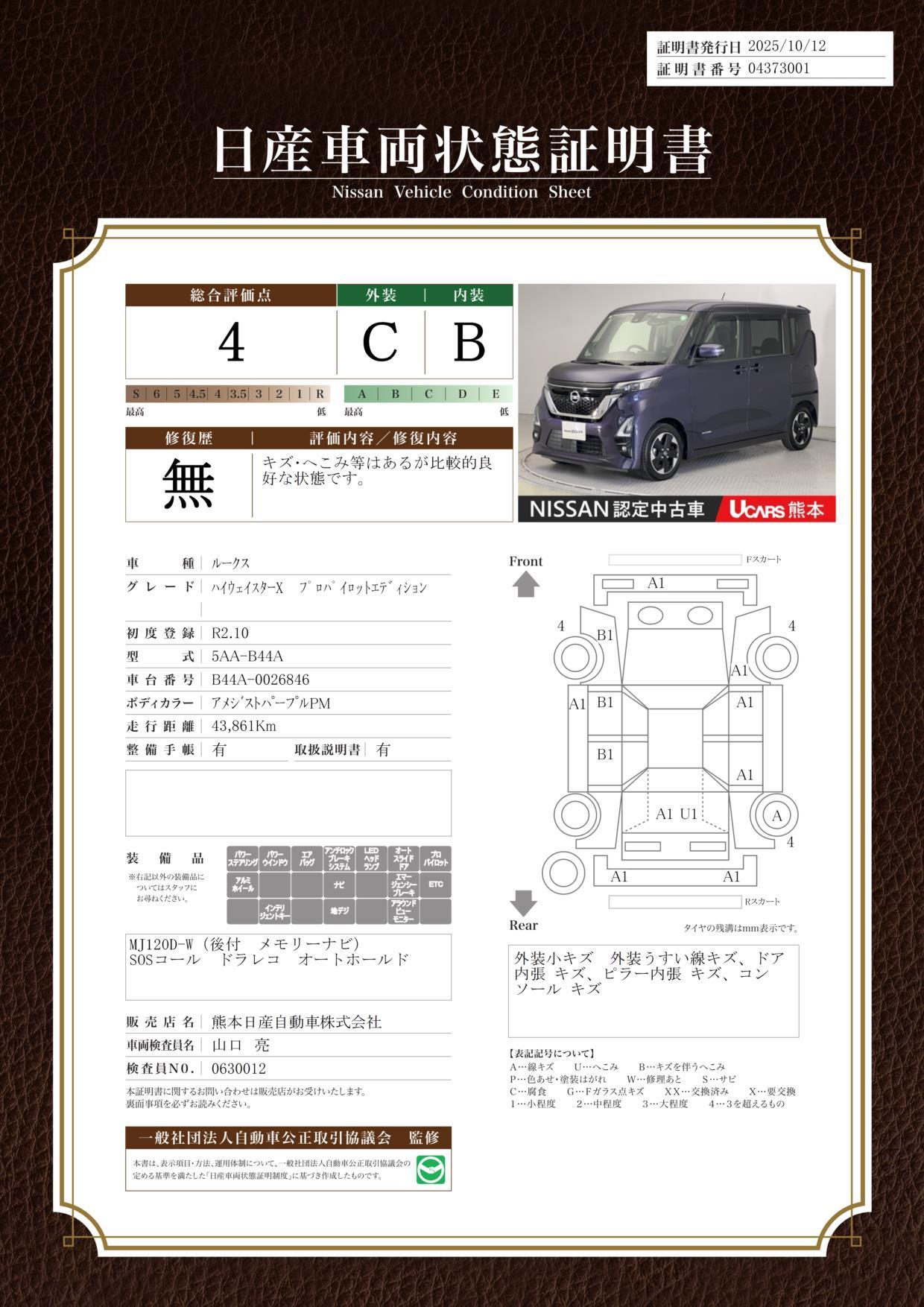 | 車両状態評価書 | ※クリックすると開きます![]() |