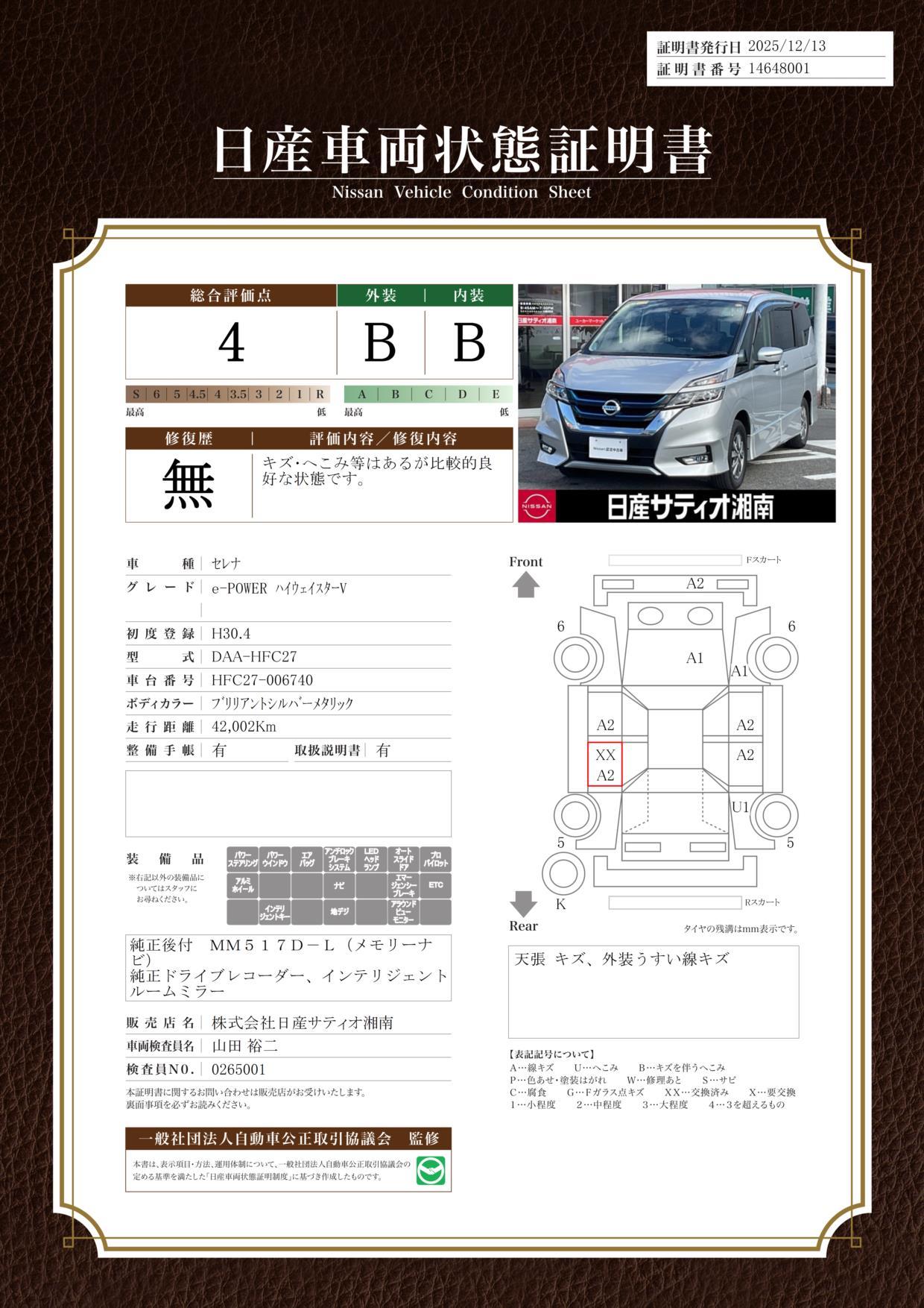 車両保証(セレナ e-パワー ハイウェイスターV:(株)日産サティオ湘南 ユーカーマーケット平塚)