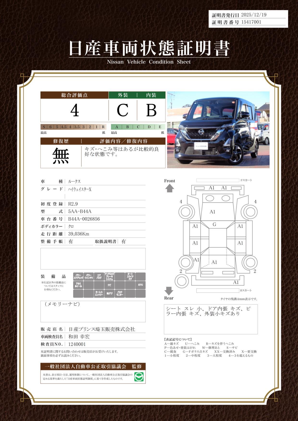 車両保証(ルークス ハイウェイスター X:日産プリンス埼玉販売(株) ユーカーズ東松山)