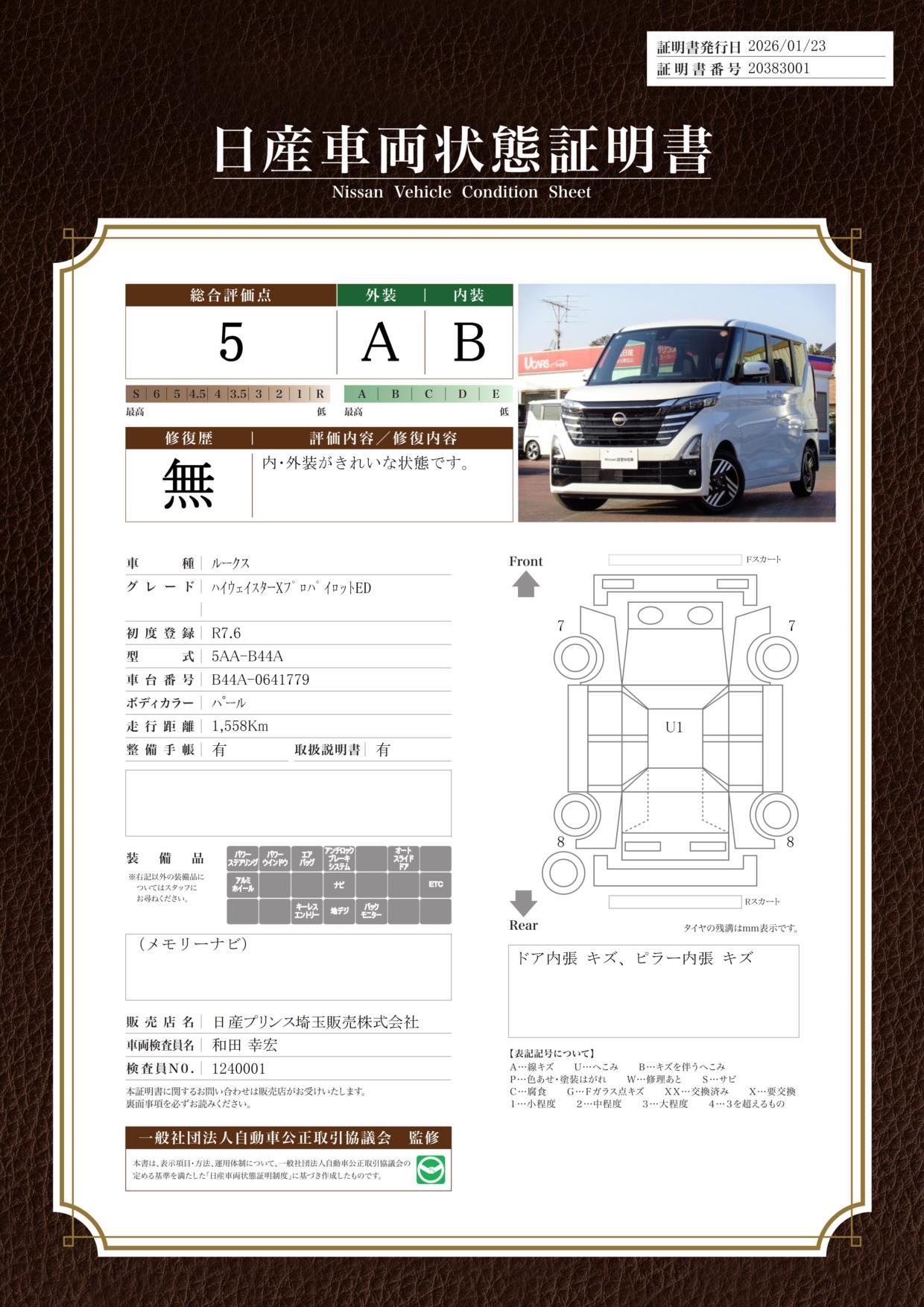 | 車両状態評価書 | ※クリックすると開きます![]() |
