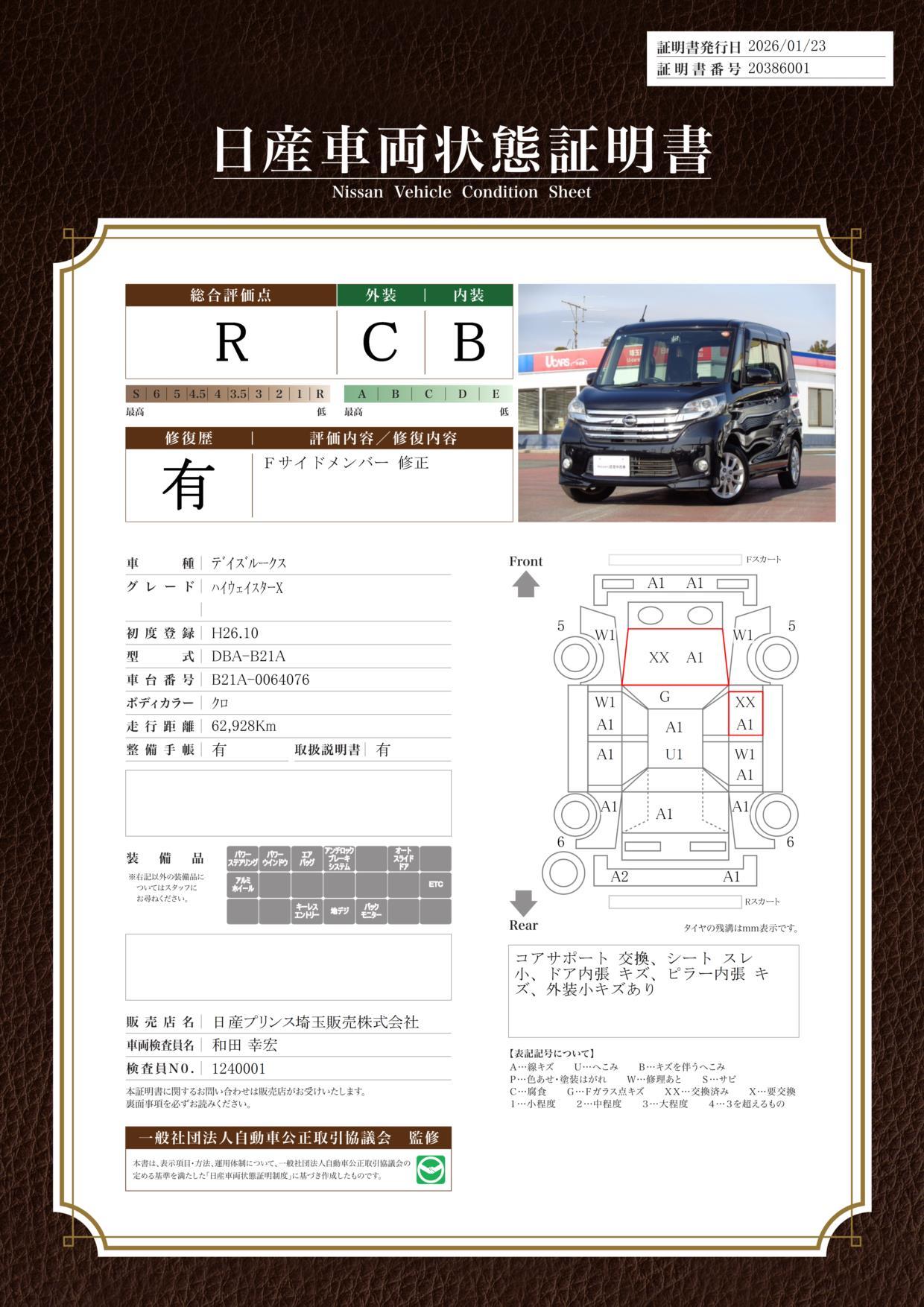 | 車両状態評価書 | ※クリックすると開きます![]() |