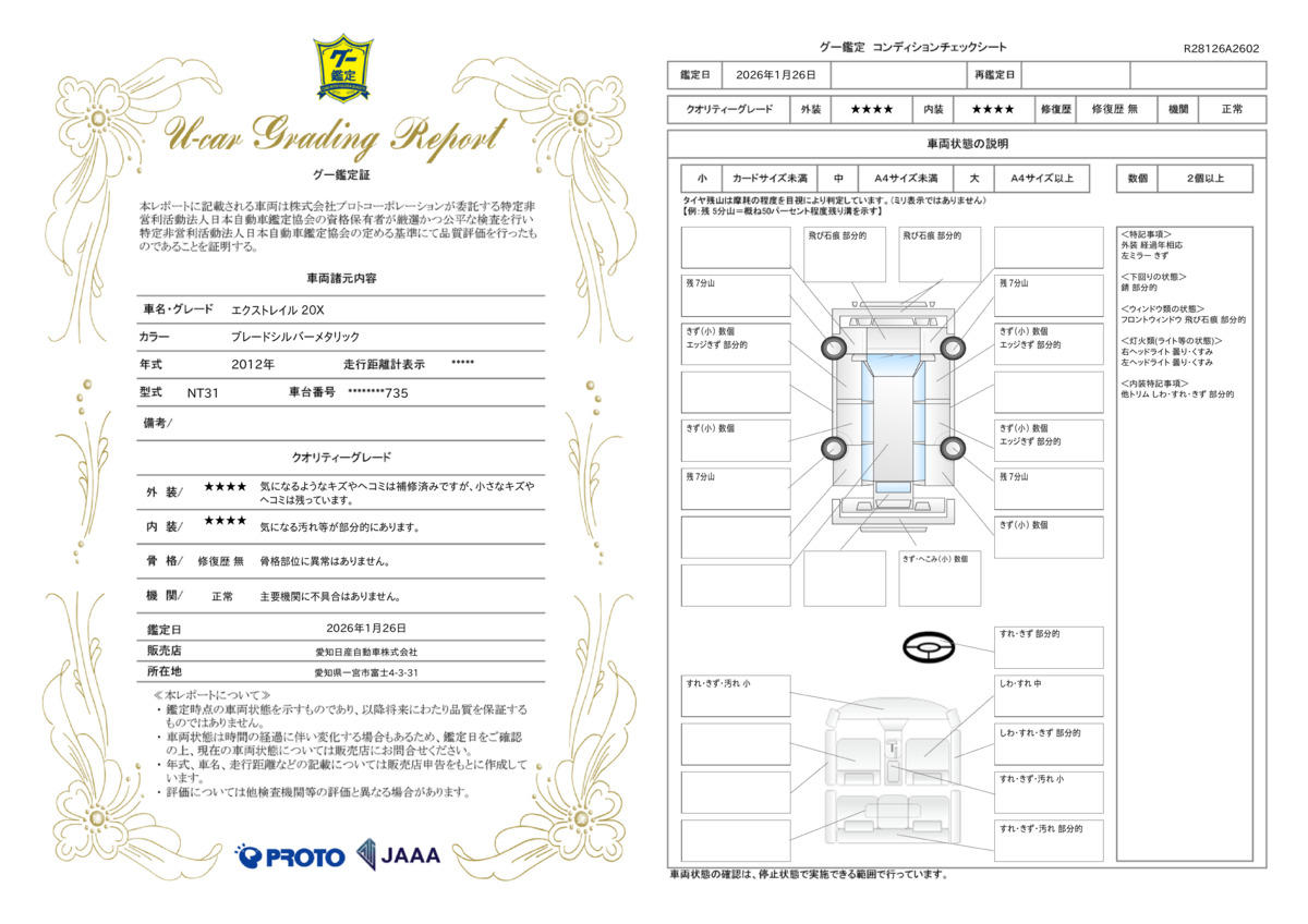 車両保証(エクストレイル 20X:愛知日産自動車(株) 一宮センター)