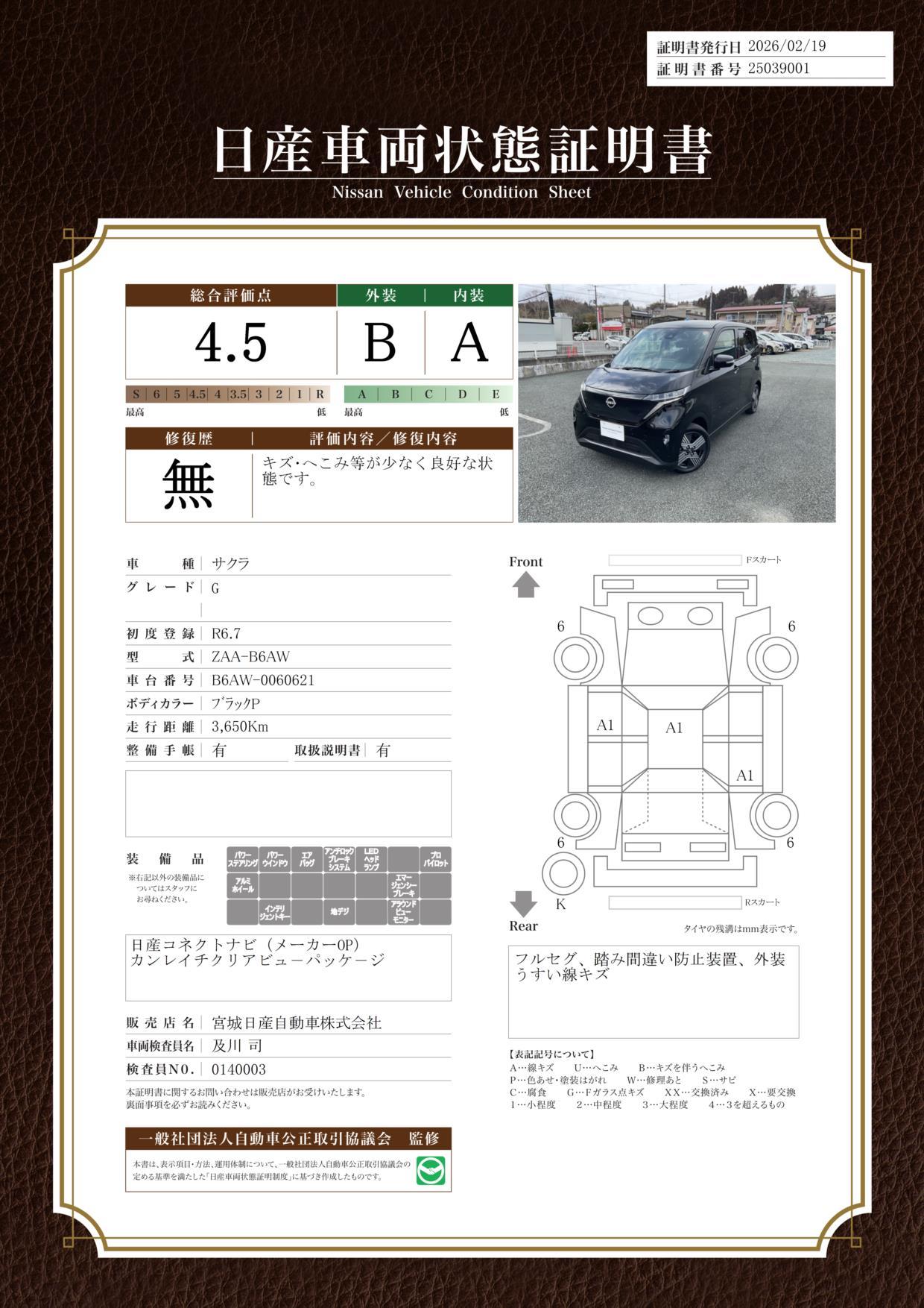 車両保証(サクラ G:宮城日産自動車(株) カートピア気仙沼)
