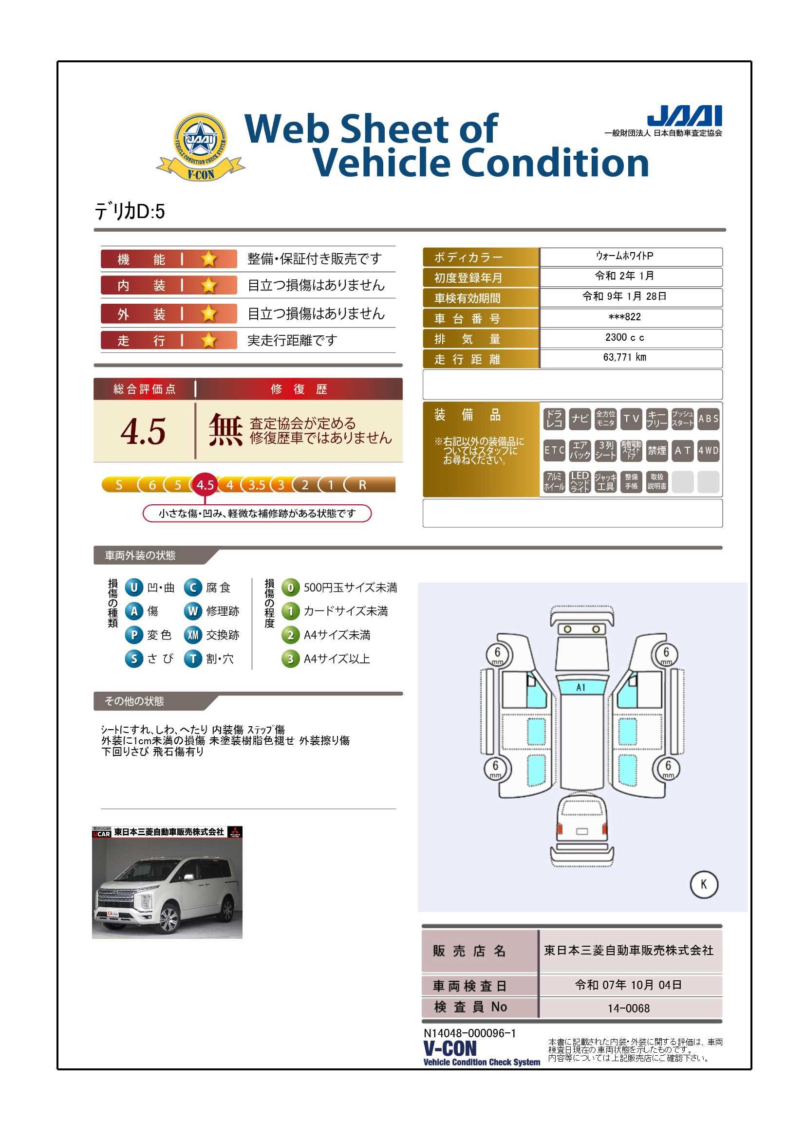 車両保証(デリカD:5 P:東日本三菱自動車販売(株) UCAR福島)