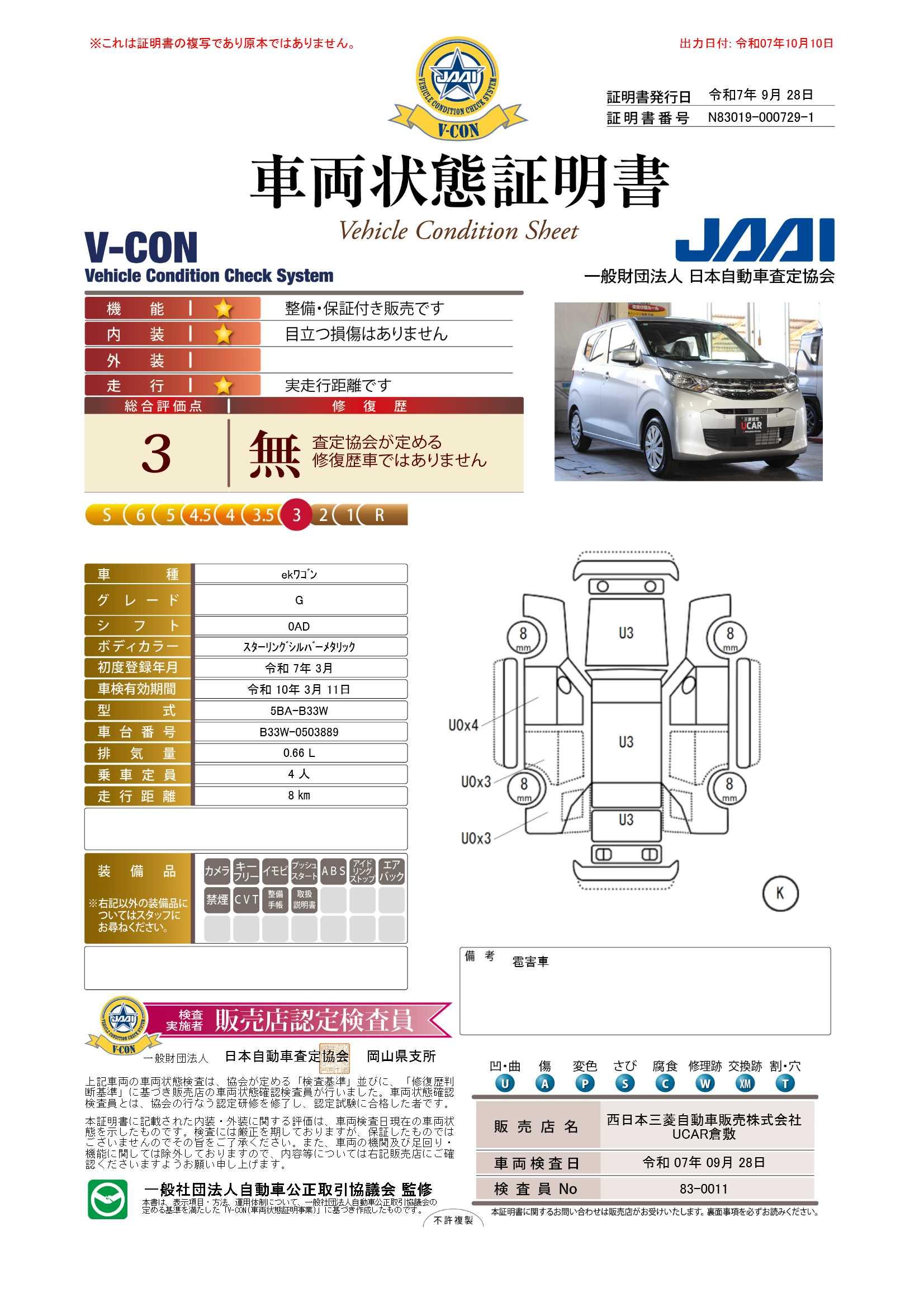 車両保証(eKワゴン G:西日本三菱自動車販売(株) UCAR倉敷)