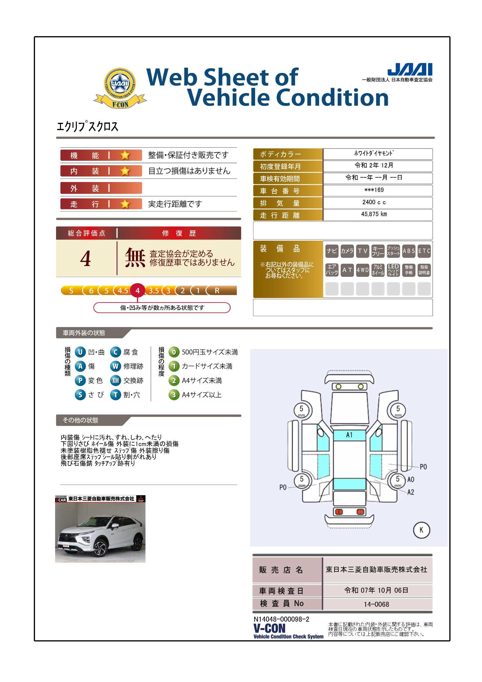 車両保証(エクリプスクロスPHEV G:東日本三菱自動車販売(株) UCAR福島)