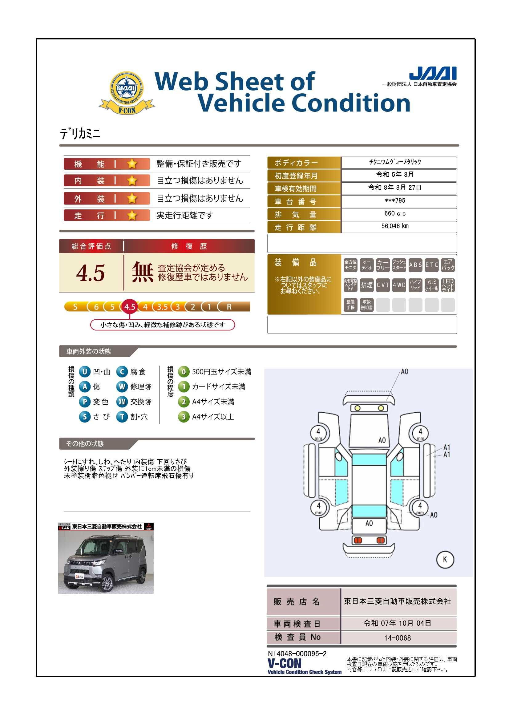 車両保証(デリカミニ T プレミアム:東日本三菱自動車販売(株) UCAR福島)