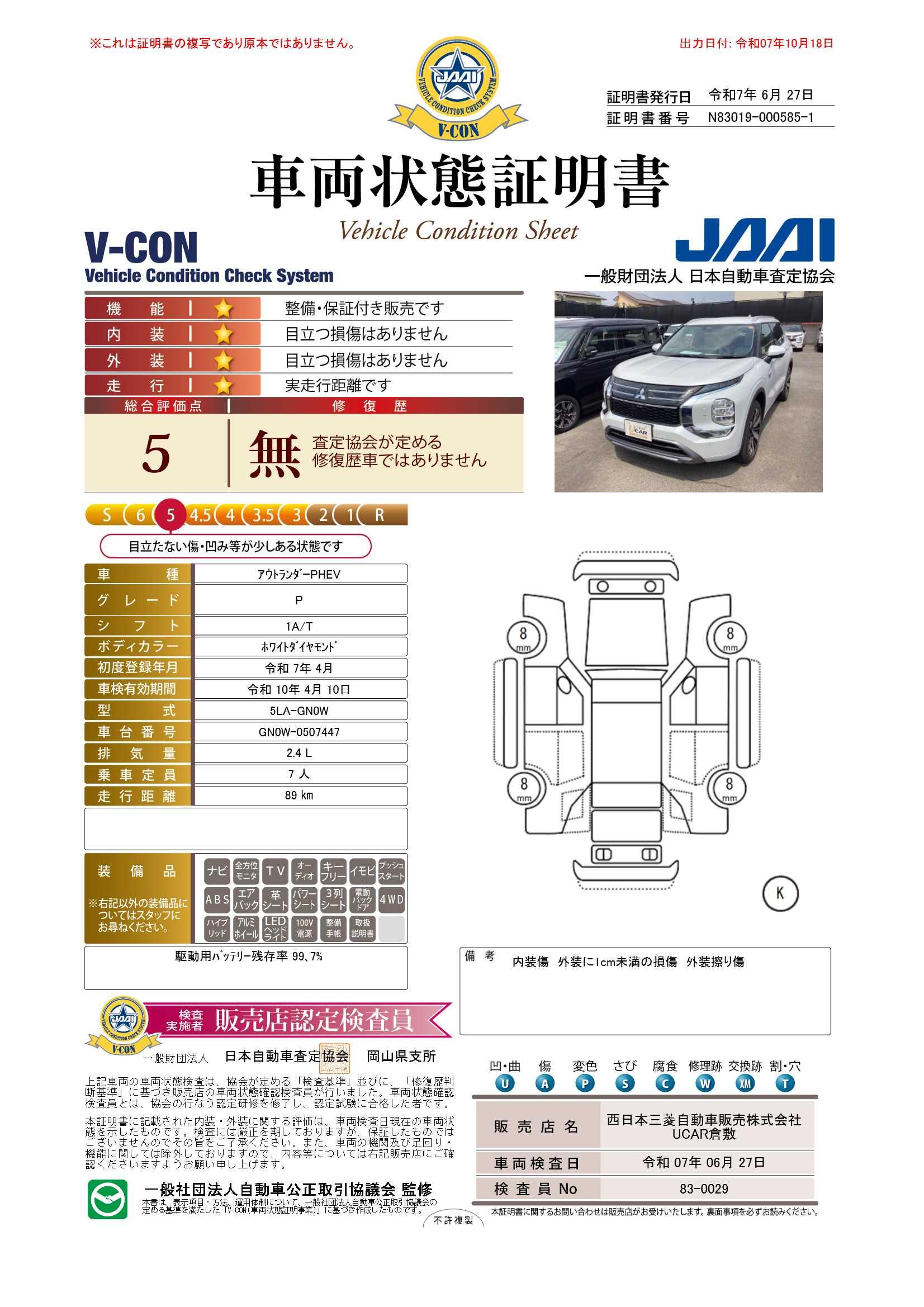 車両保証(アウトランダーPHEV P:西日本三菱自動車販売(株) UCAR倉敷)