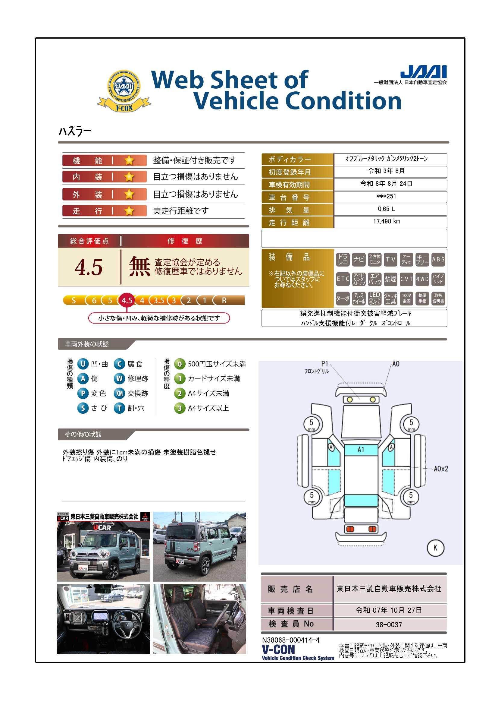 | ボディタイプ | 軽自動車 | 車台番号下3桁 | 251 |