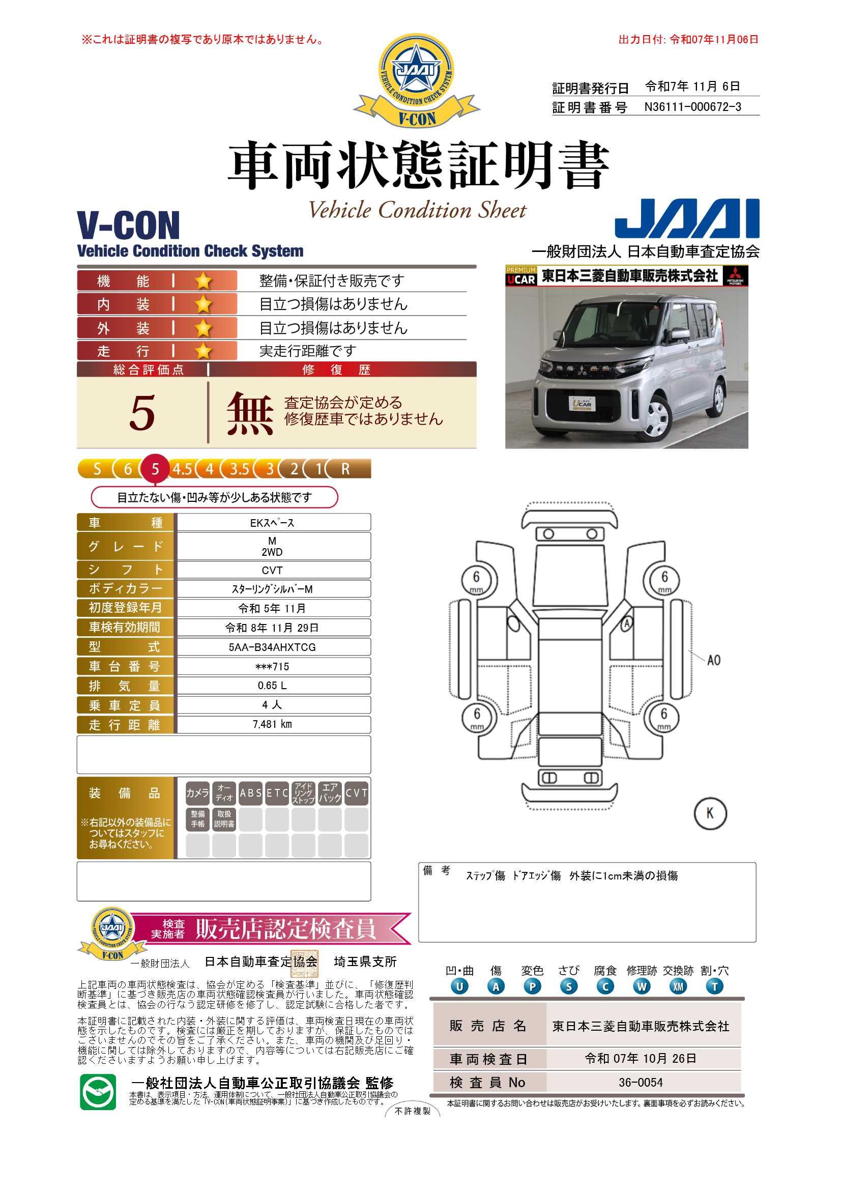 車両保証(eKスペース M:東日本三菱自動車販売(株) UCAR春日部)