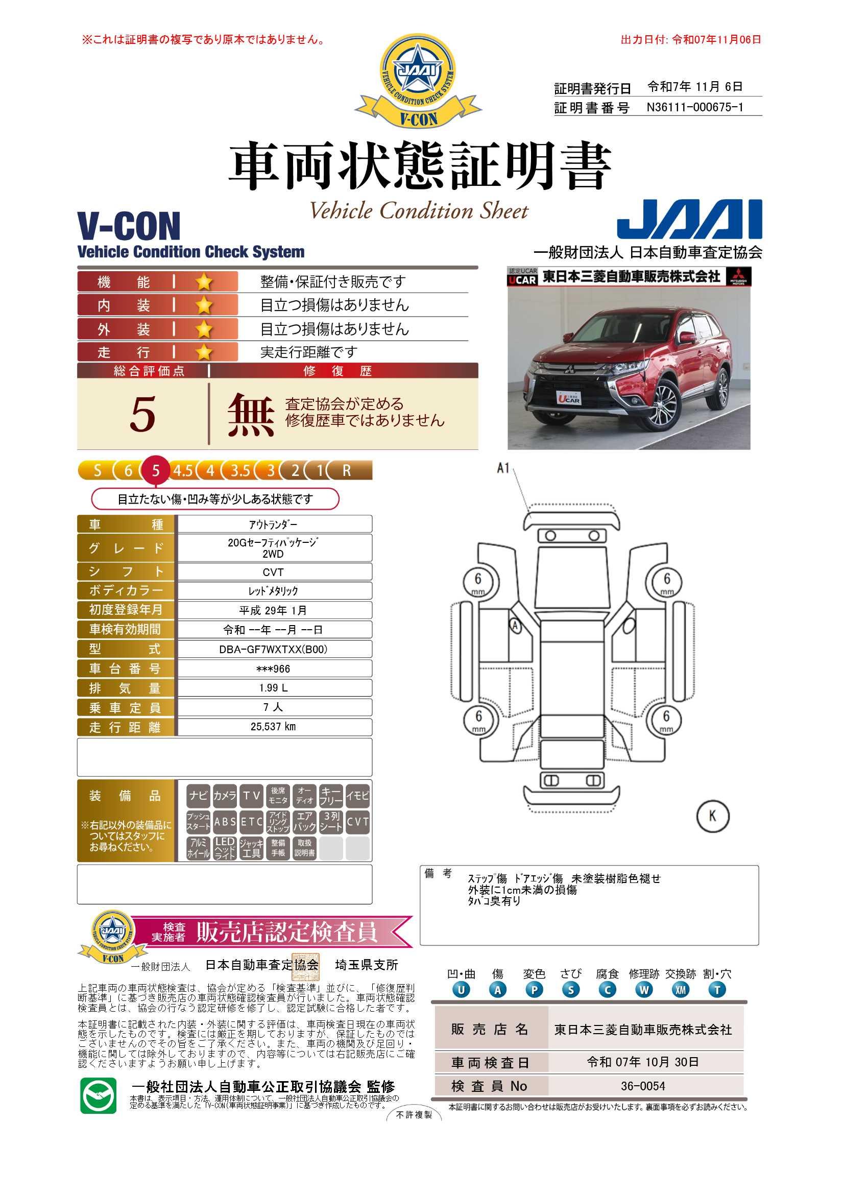 車両保証(アウトランダー 20Gセーフティパッケージ:東日本三菱自動車販売(株) UCAR春日部)