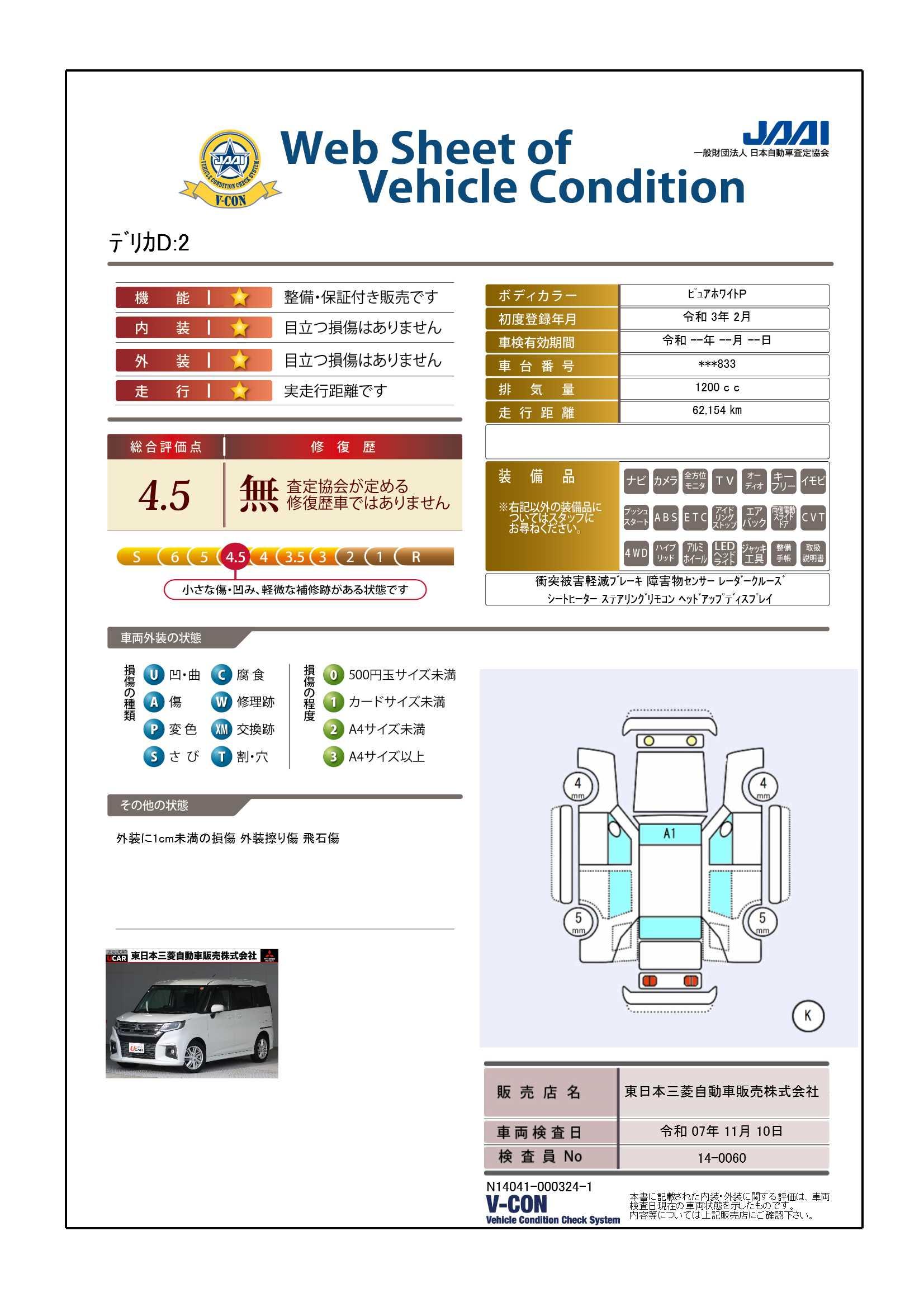 車両保証(デリカD:2 ハイブリッドMZ 全方位カメラパッケージ:東日本三菱自動車販売(株) UCAR福島)