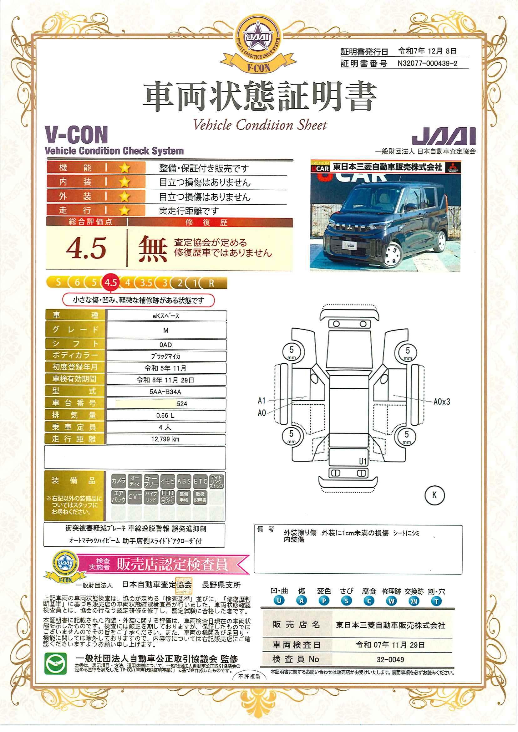 車両保証(eKスペース M:東日本三菱自動車販売(株) UCAR岡谷)