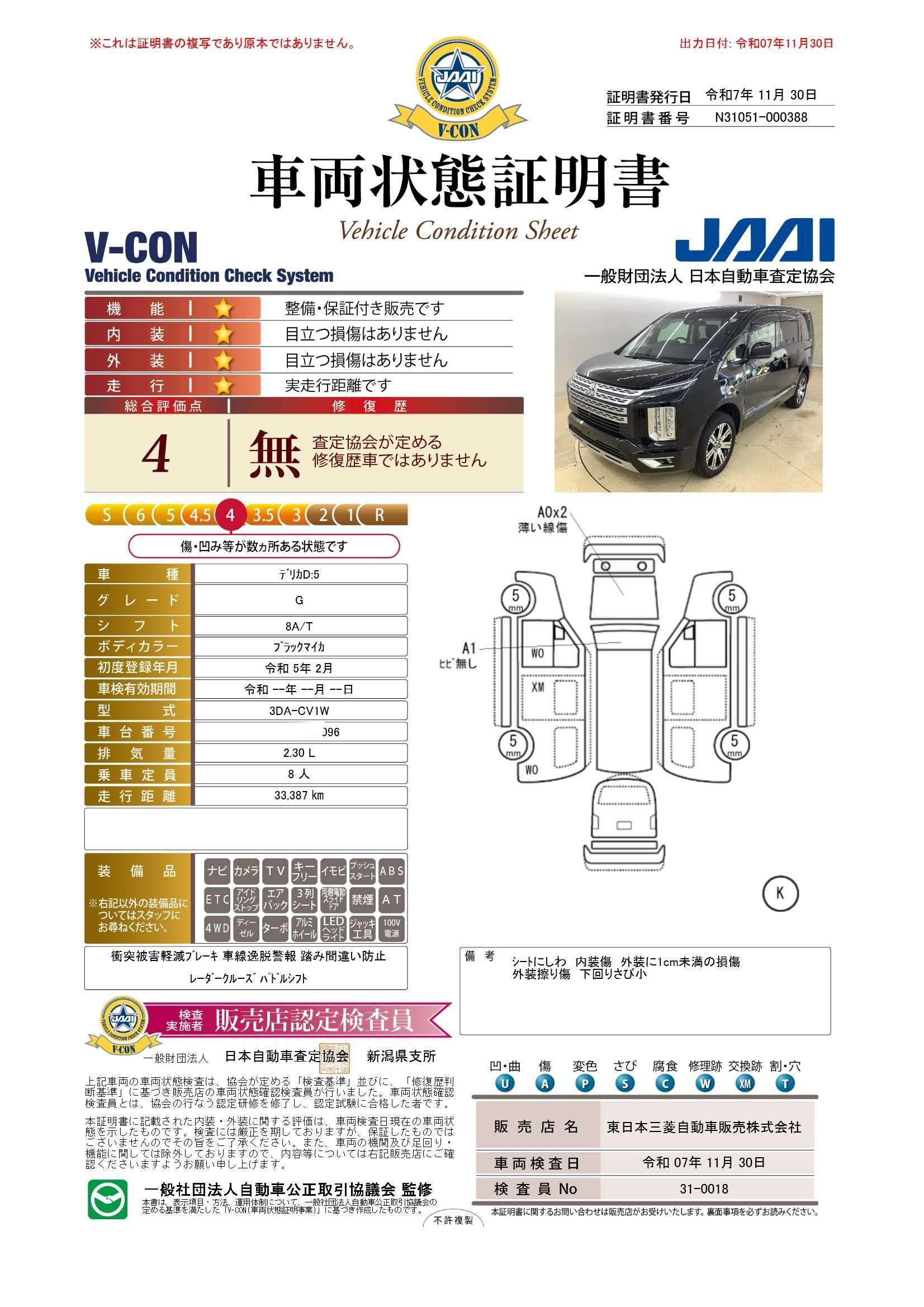 車両保証(デリカD:5 G:東日本三菱自動車販売(株) UCAR新潟東)