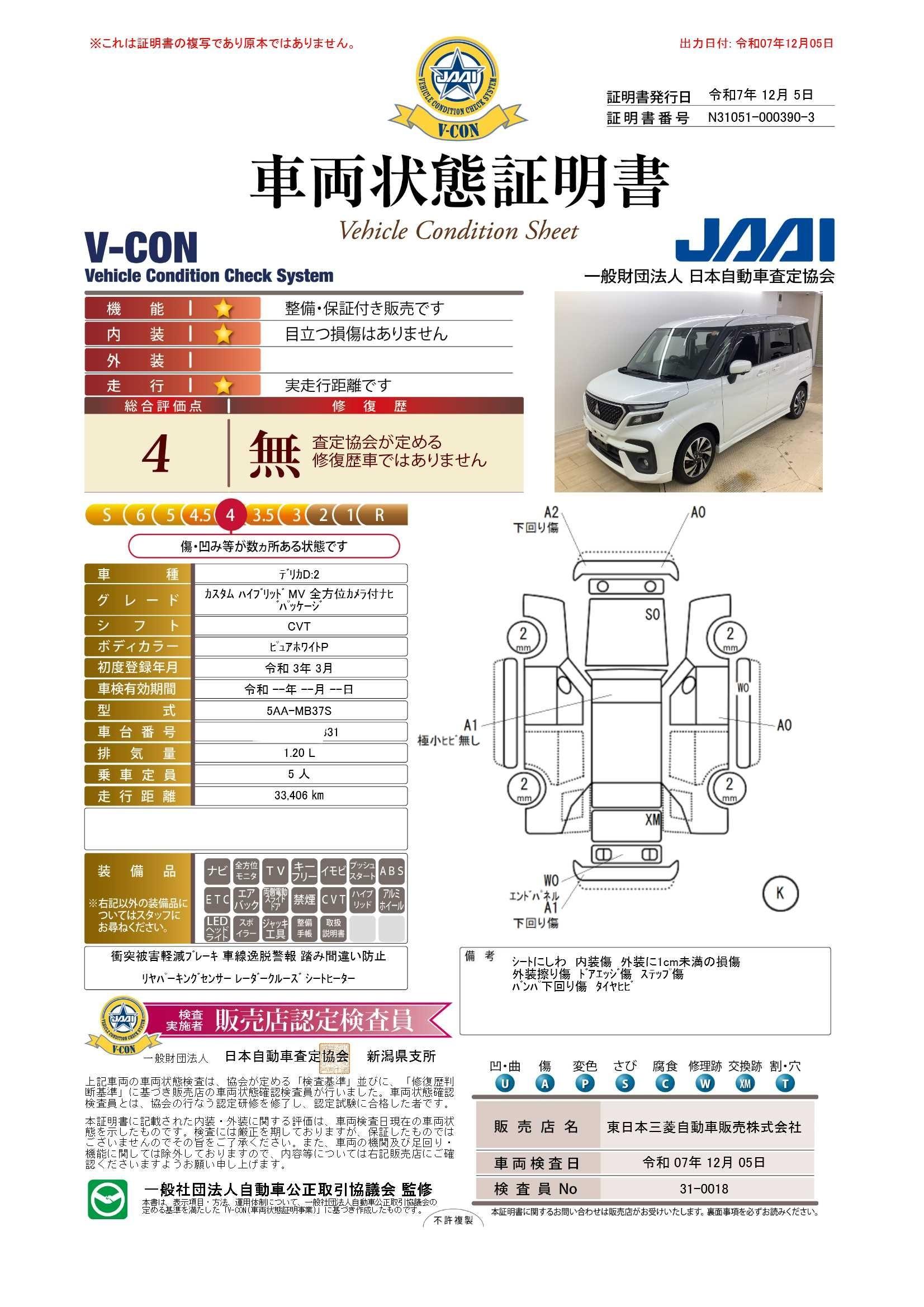 車両保証(デリカD:2 カスタムハイブリッドMV全方位カメラ付ナビパッケージ:東日本三菱自動車販売(株) UCAR新潟東)