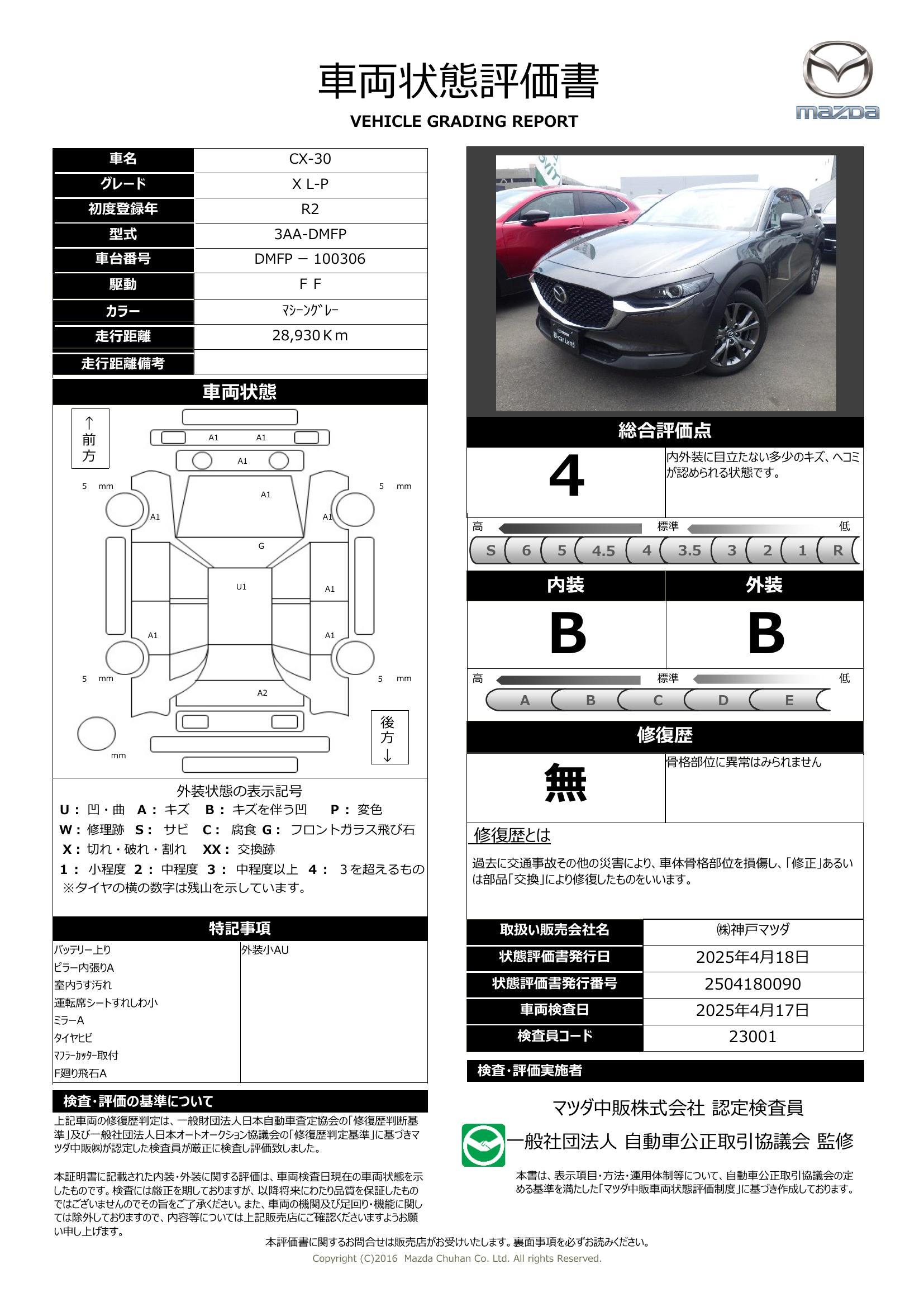| 車両状態評価書 | ※クリックすると開きます![]() |