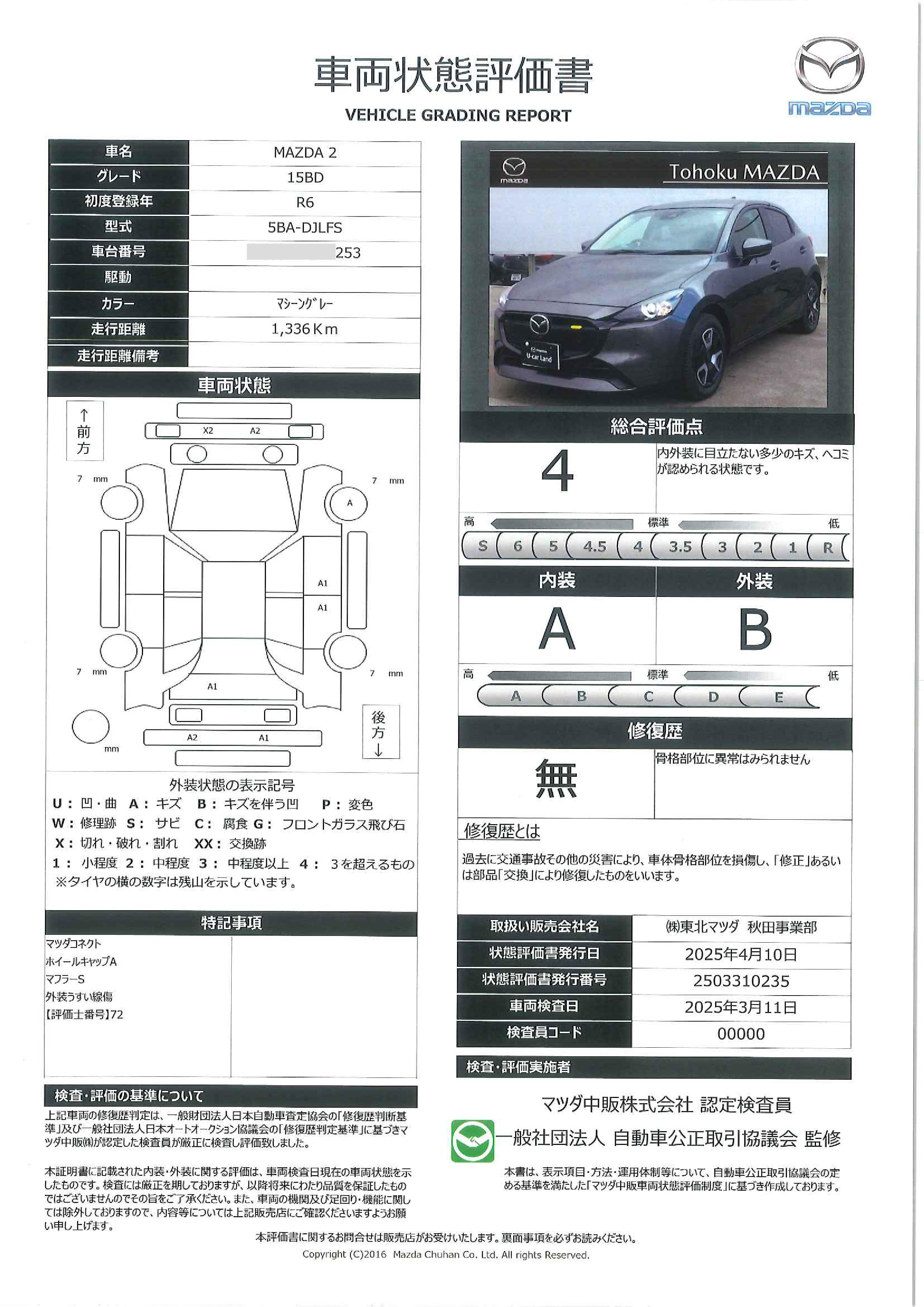| 車両状態評価書 | ※クリックすると開きます![]() |