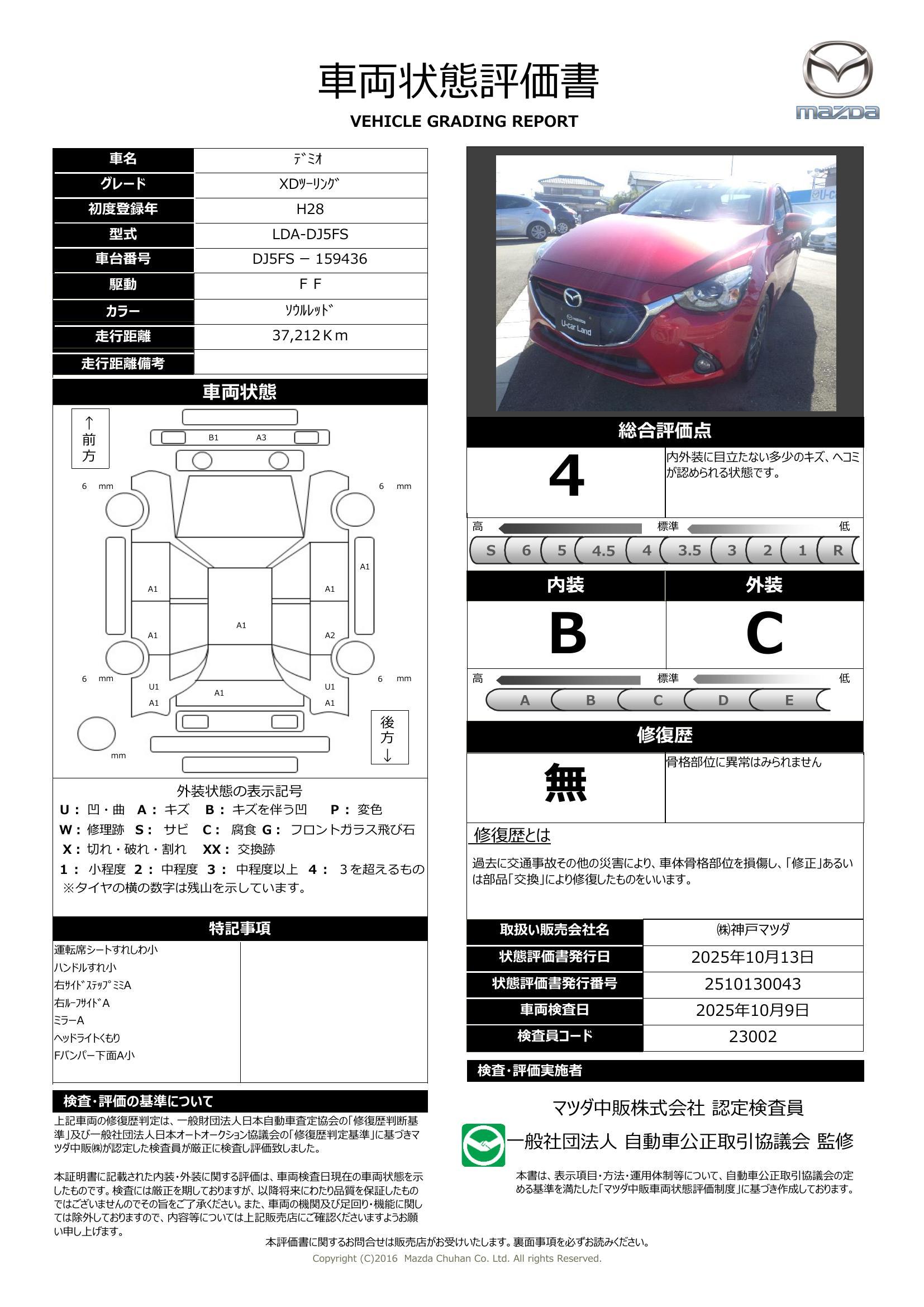 | 車両状態評価書 | ※クリックすると開きます![]() |