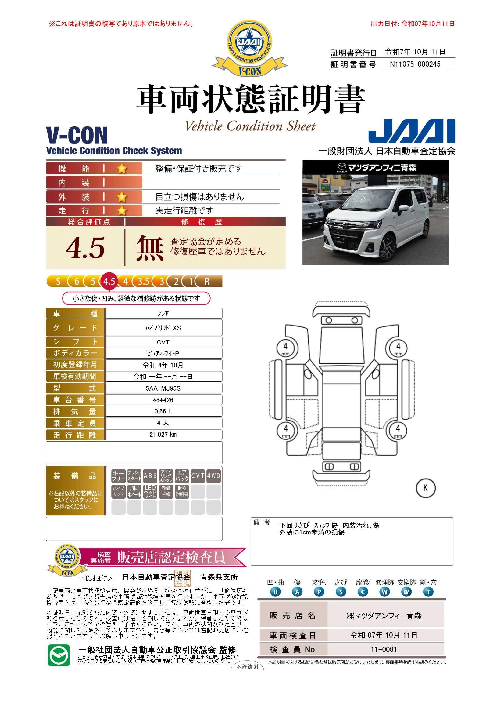 車両保証(フレア ハイブリッドXS:株式会社マツダアンフィニ青森 八戸店)