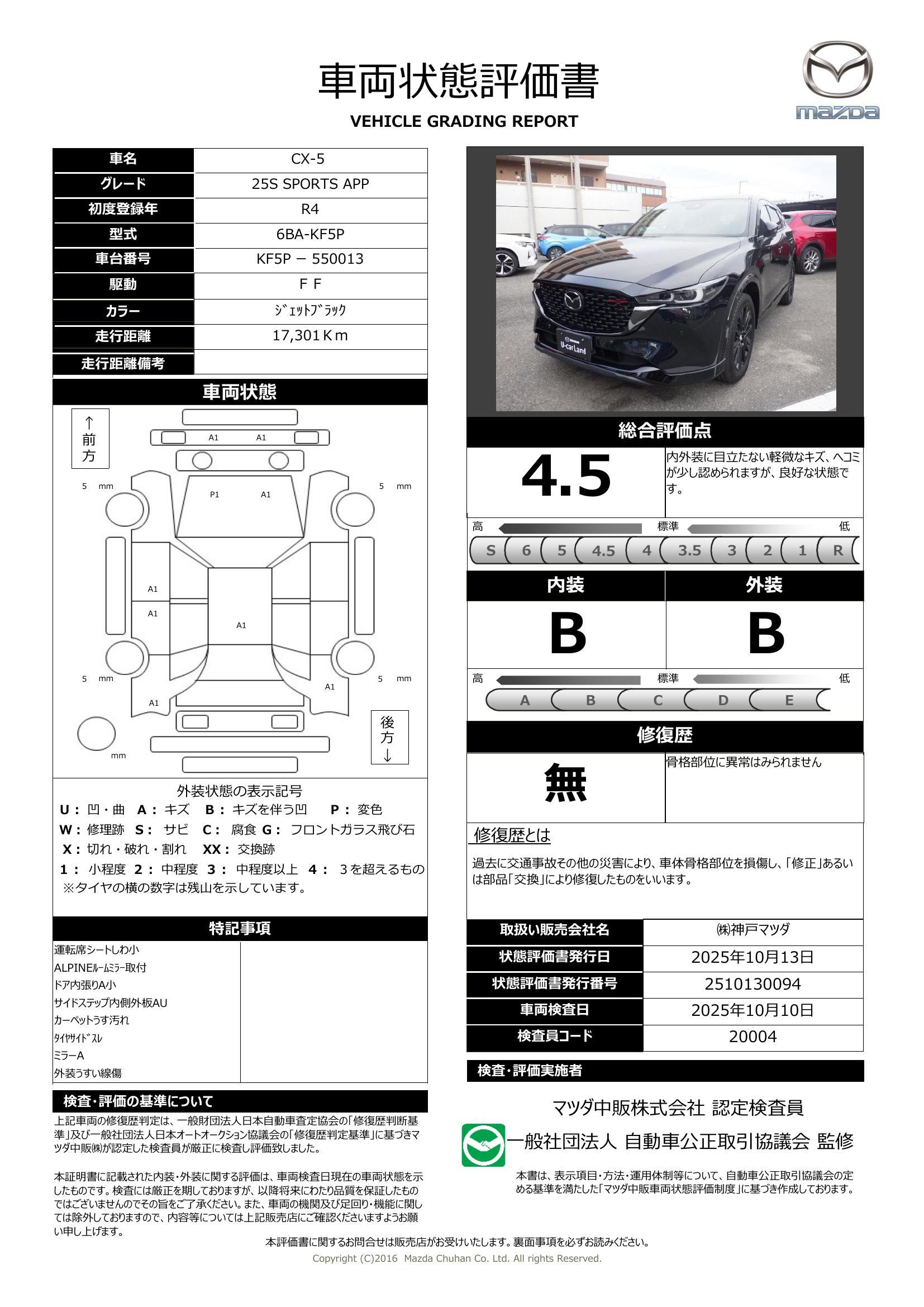 | 車両状態評価書 | ※クリックすると開きます![]() |