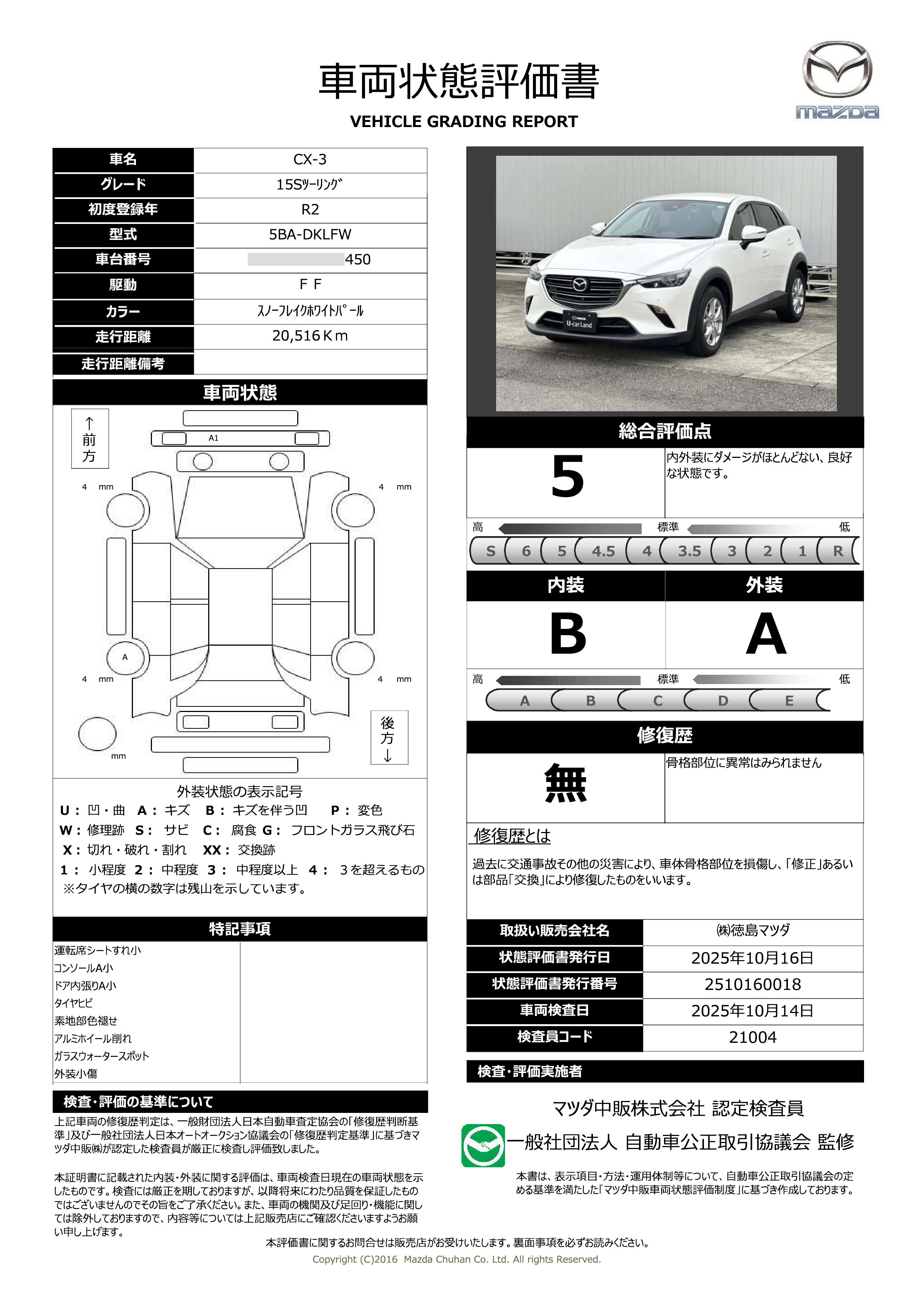| 車両状態評価書 | ※クリックすると開きます![]() |