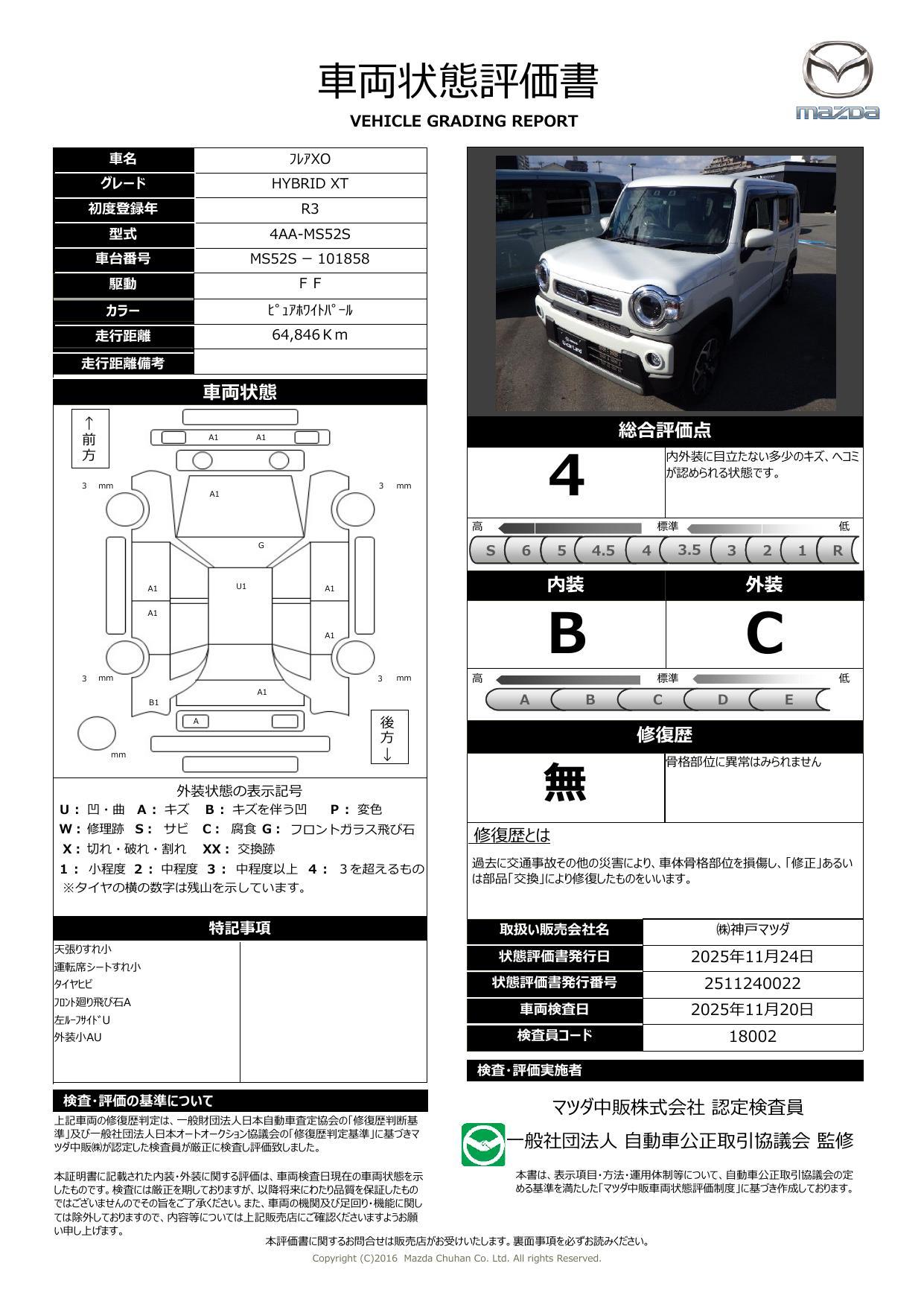| 車両状態評価書 | ※クリックすると開きます![]() |