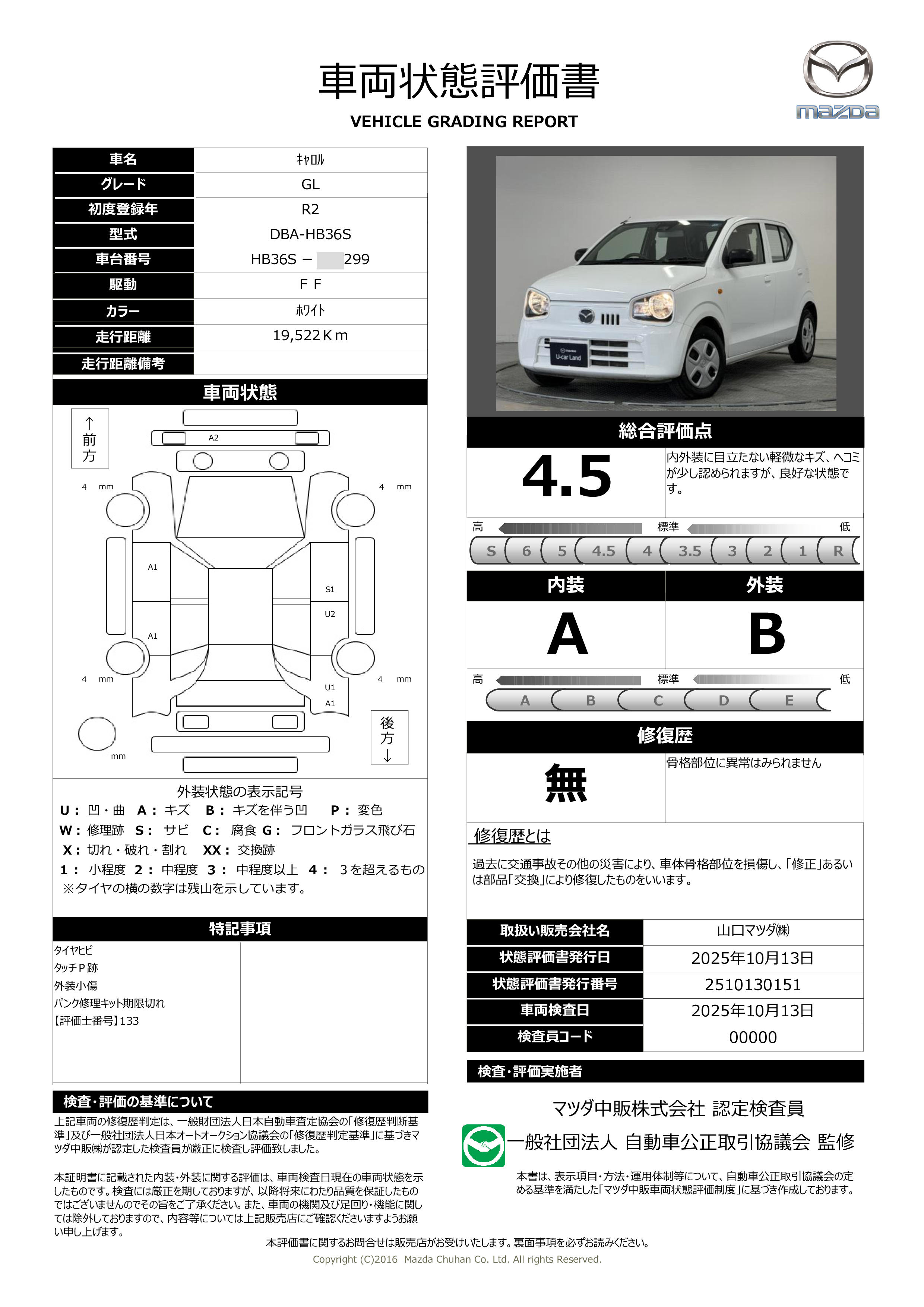 車両保証(キャロル GL:山口マツダ(株)防府西ユーカーランド)