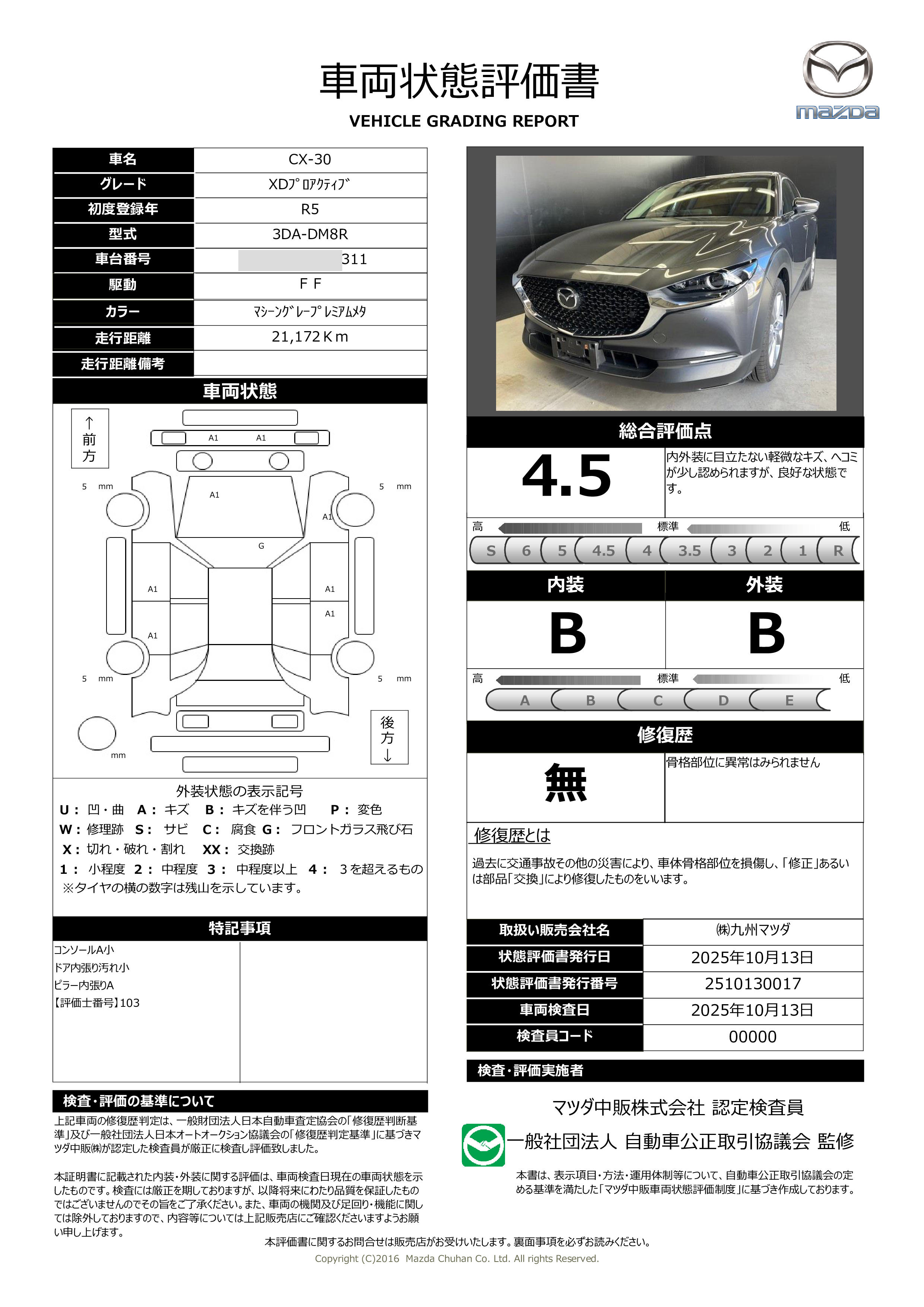 車両状態評価書 | ※クリックすると開きます![]() |
