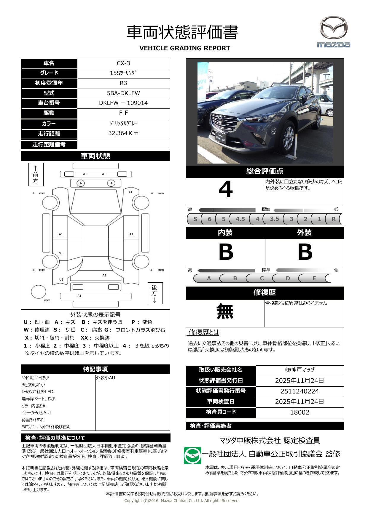 | 車両状態評価書 | ※クリックすると開きます![]() |
