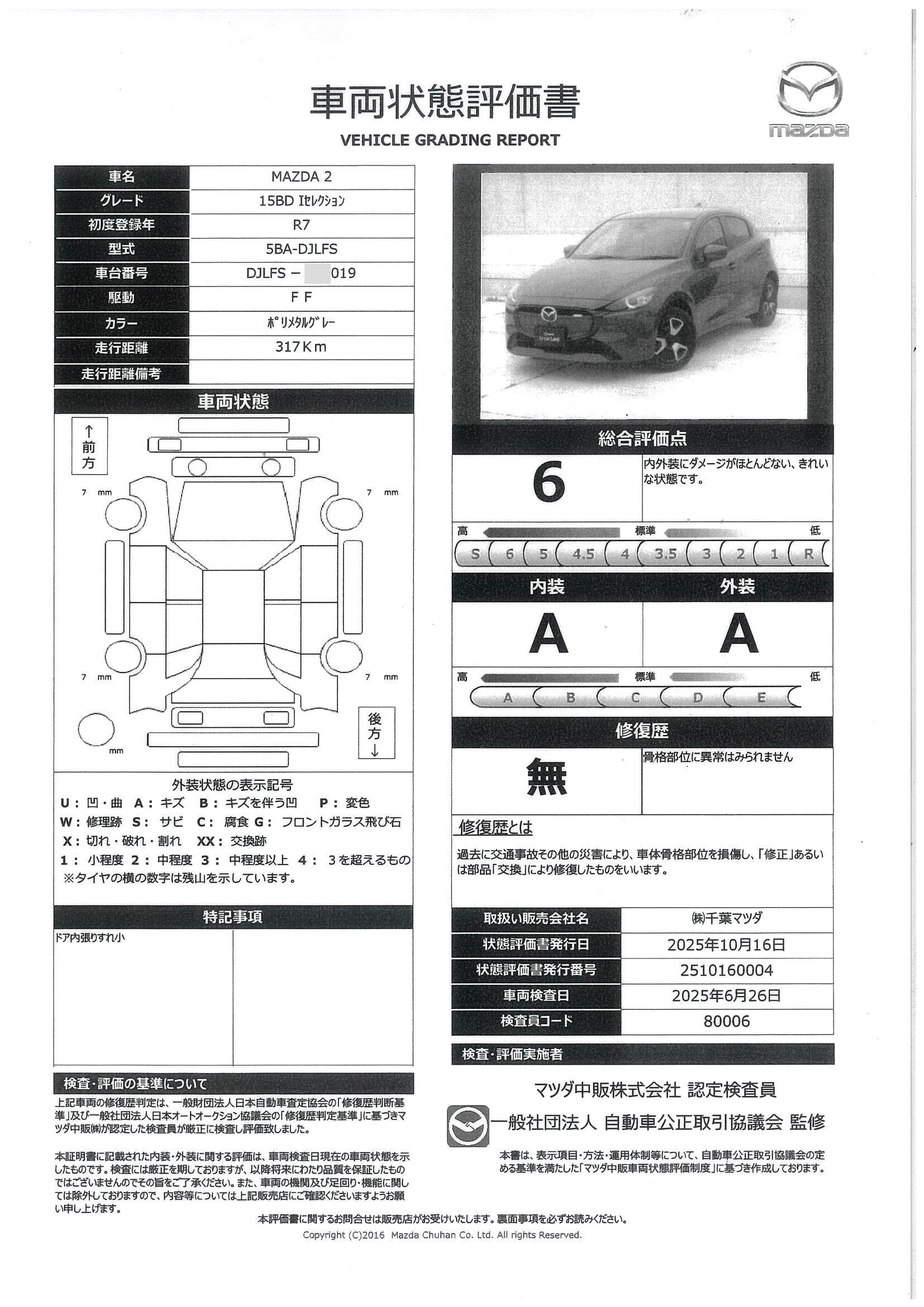 | 車両状態評価書 | ※クリックすると開きます![]() |