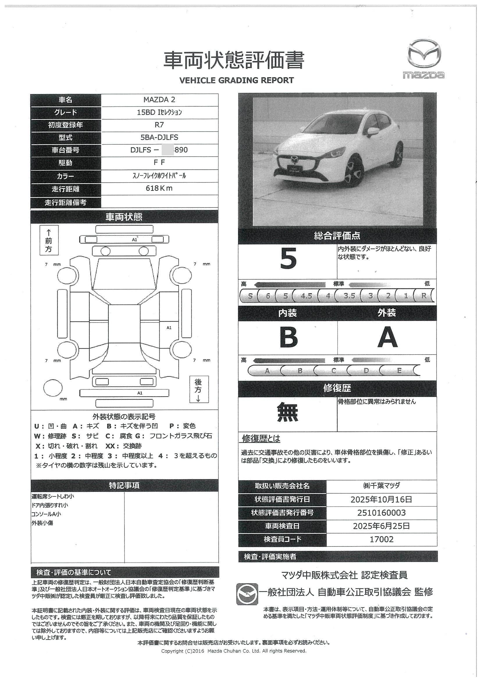 | 車両状態評価書 | ※クリックすると開きます![]() |