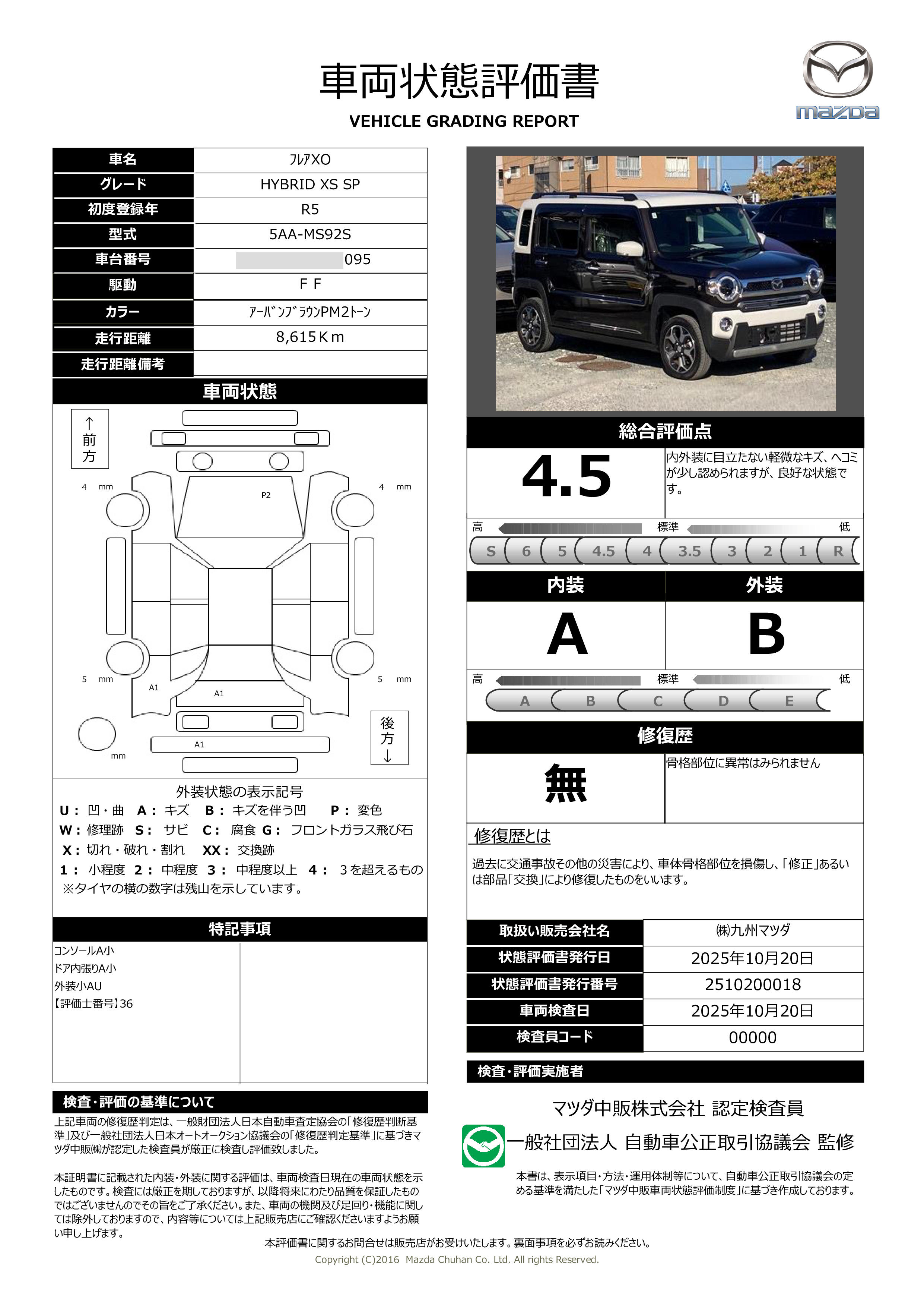 | 車両状態評価書 | ※クリックすると開きます![]() |