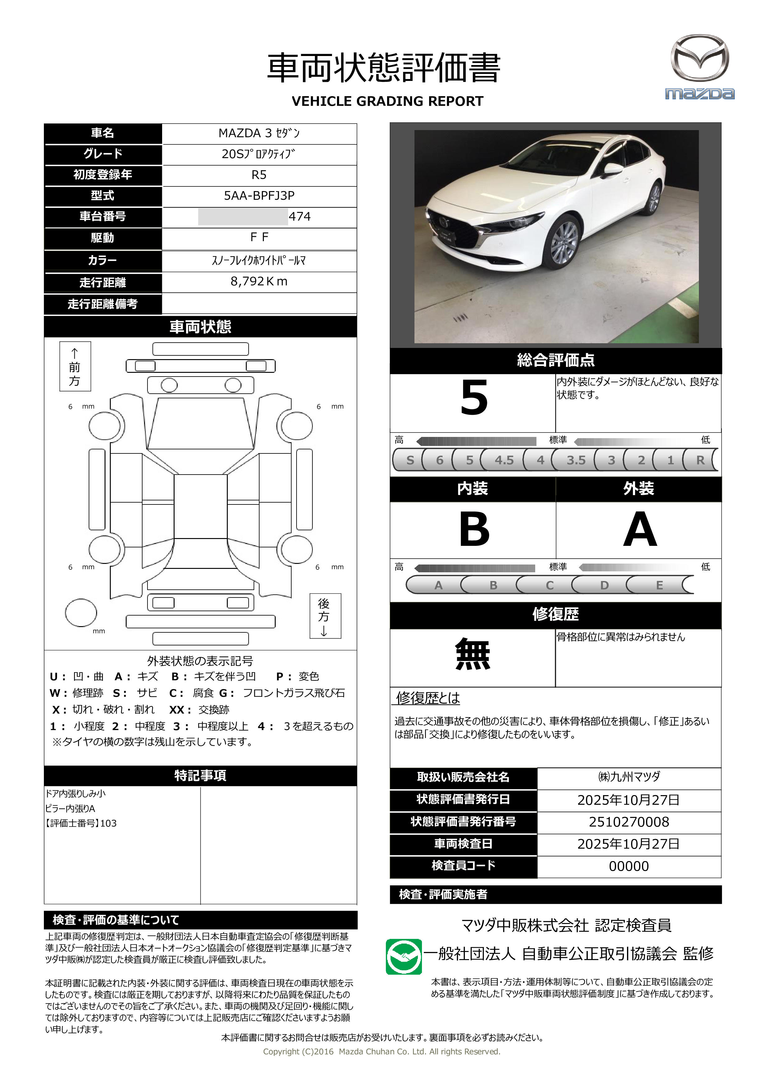 | 車両状態評価書 | ※クリックすると開きます![]() |