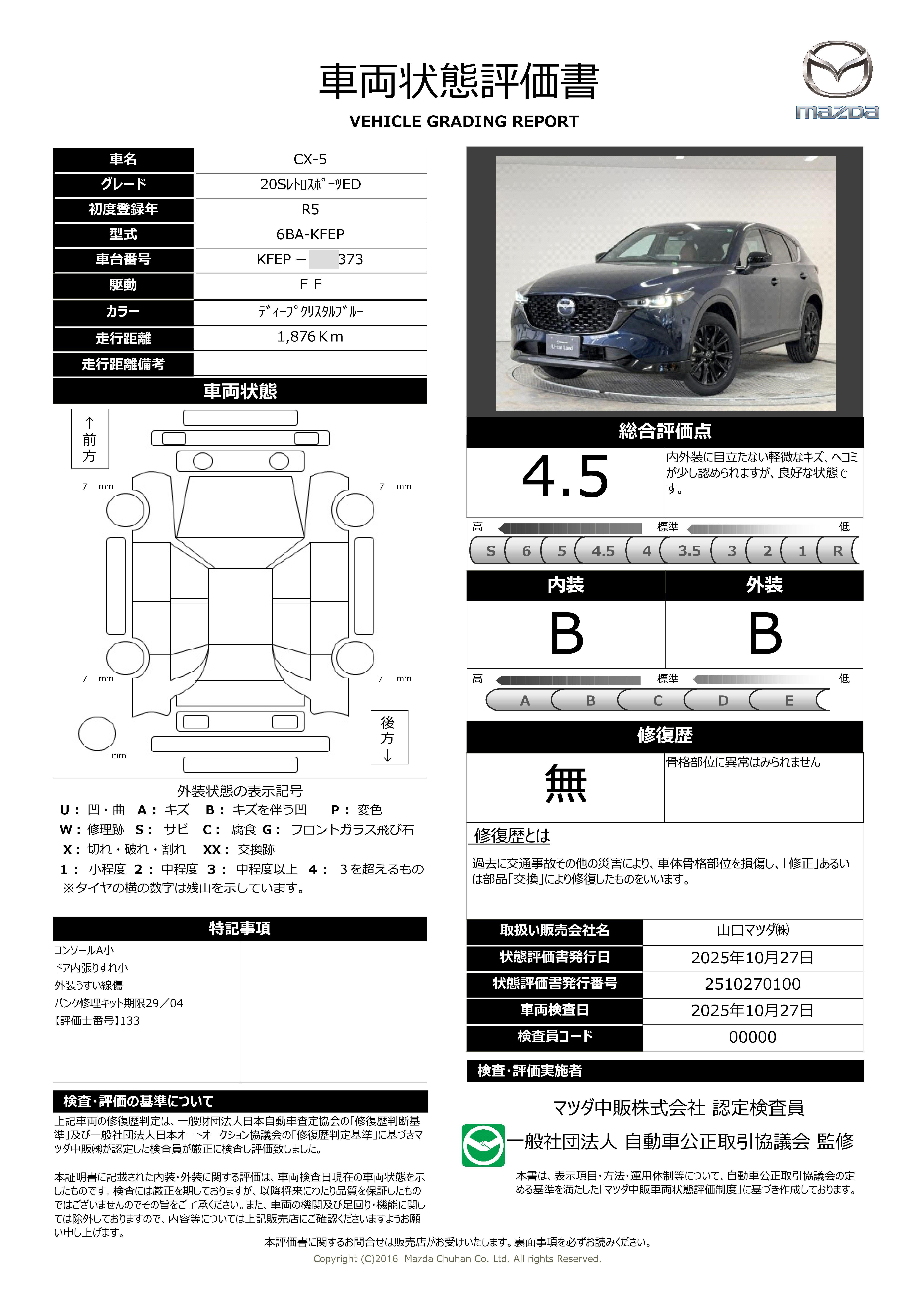 | 車両状態評価書 | ※クリックすると開きます  | ||
