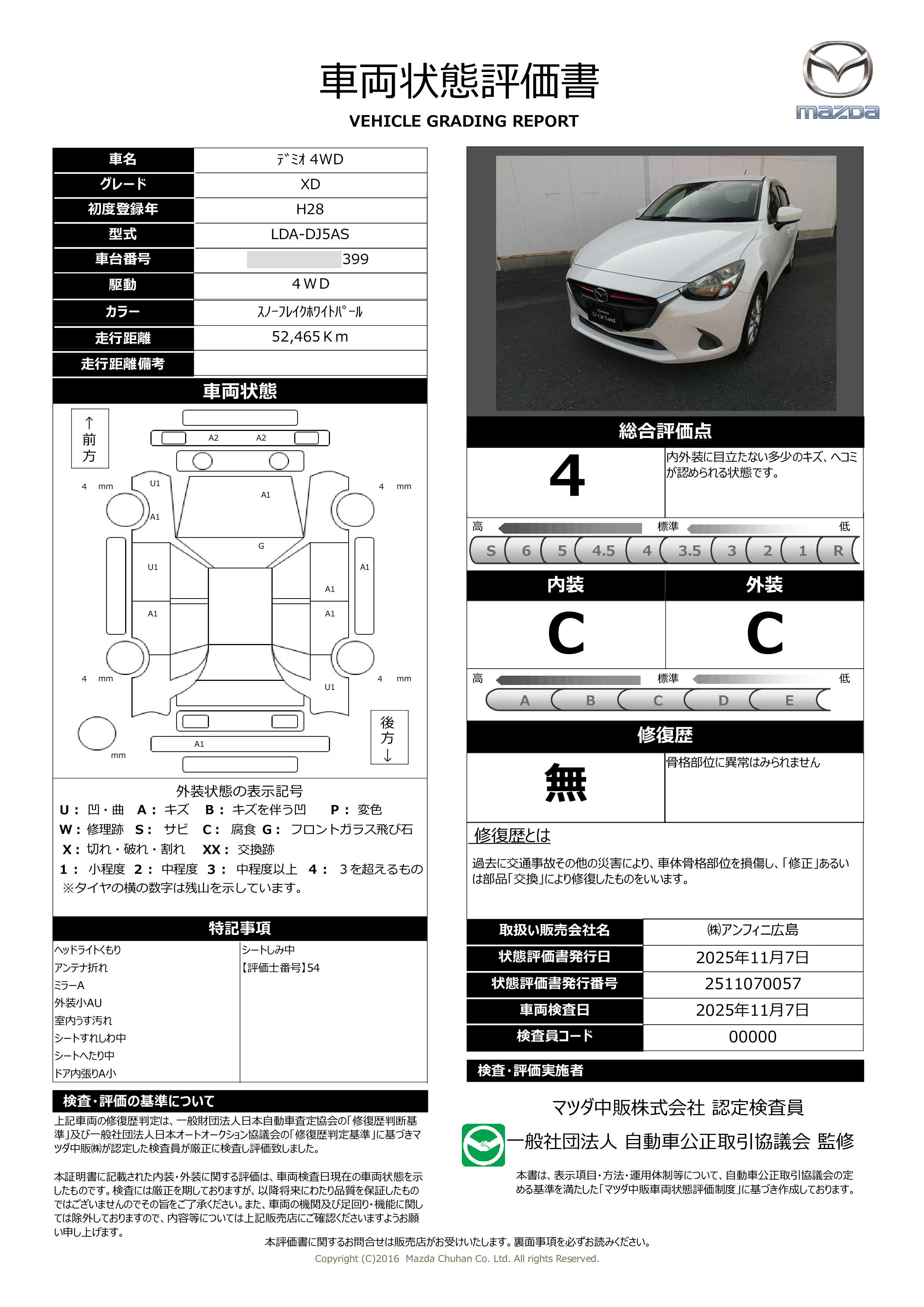 | 車両状態評価書 | ※クリックすると開きます![]() |
