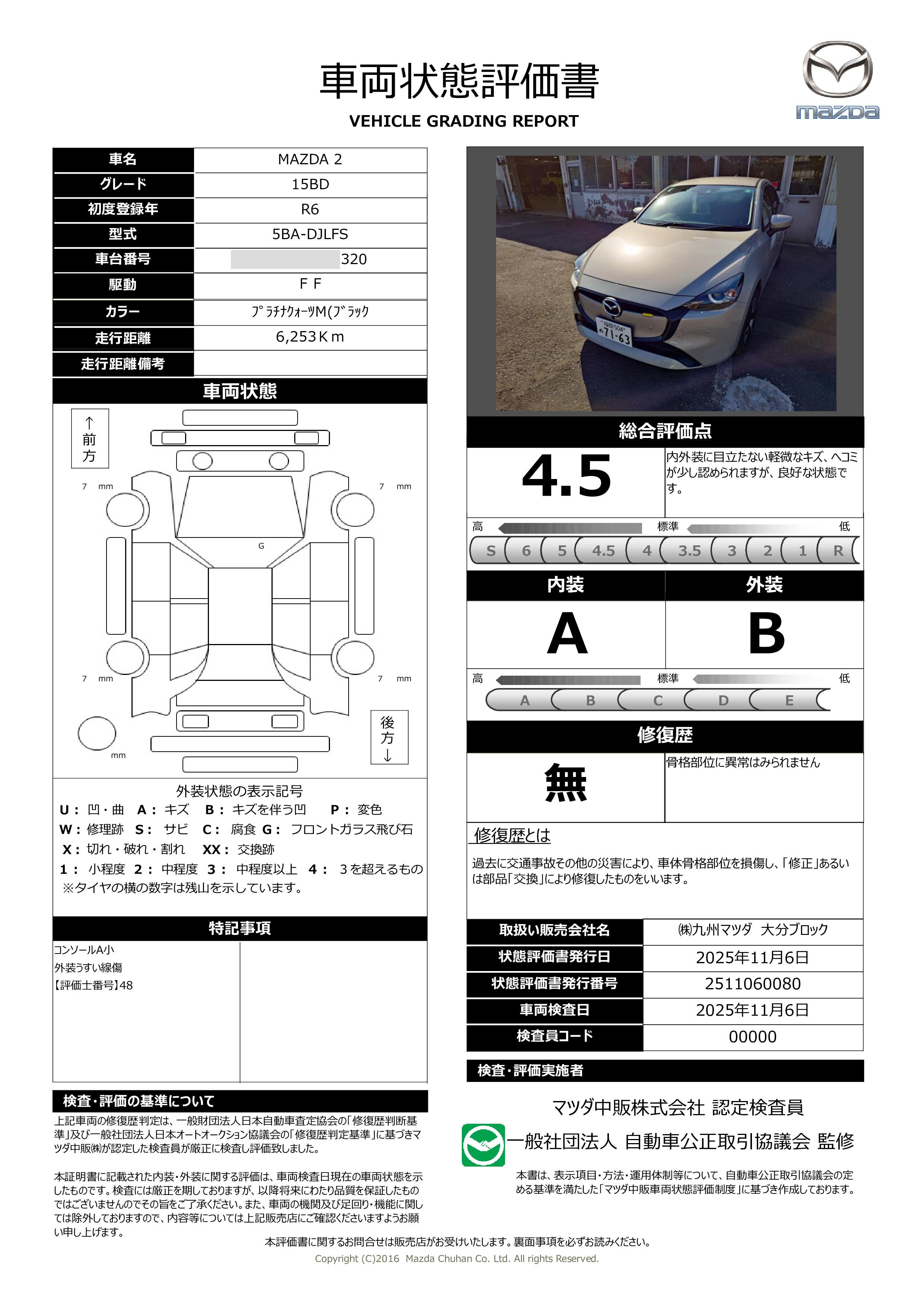 | 車両状態評価書 | ※クリックすると開きます![]() |