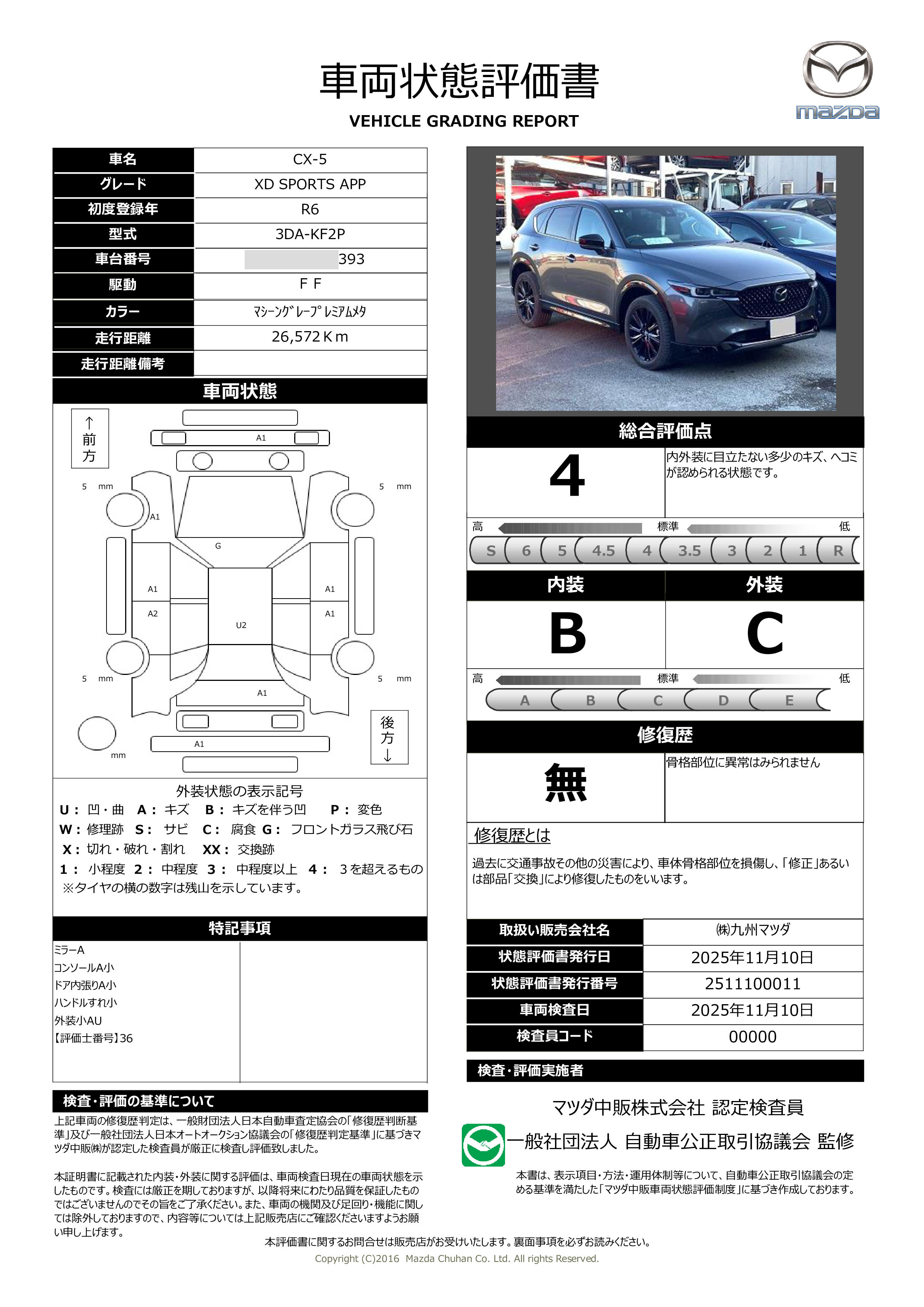 | 車両状態評価書 | ※クリックすると開きます![]() |
