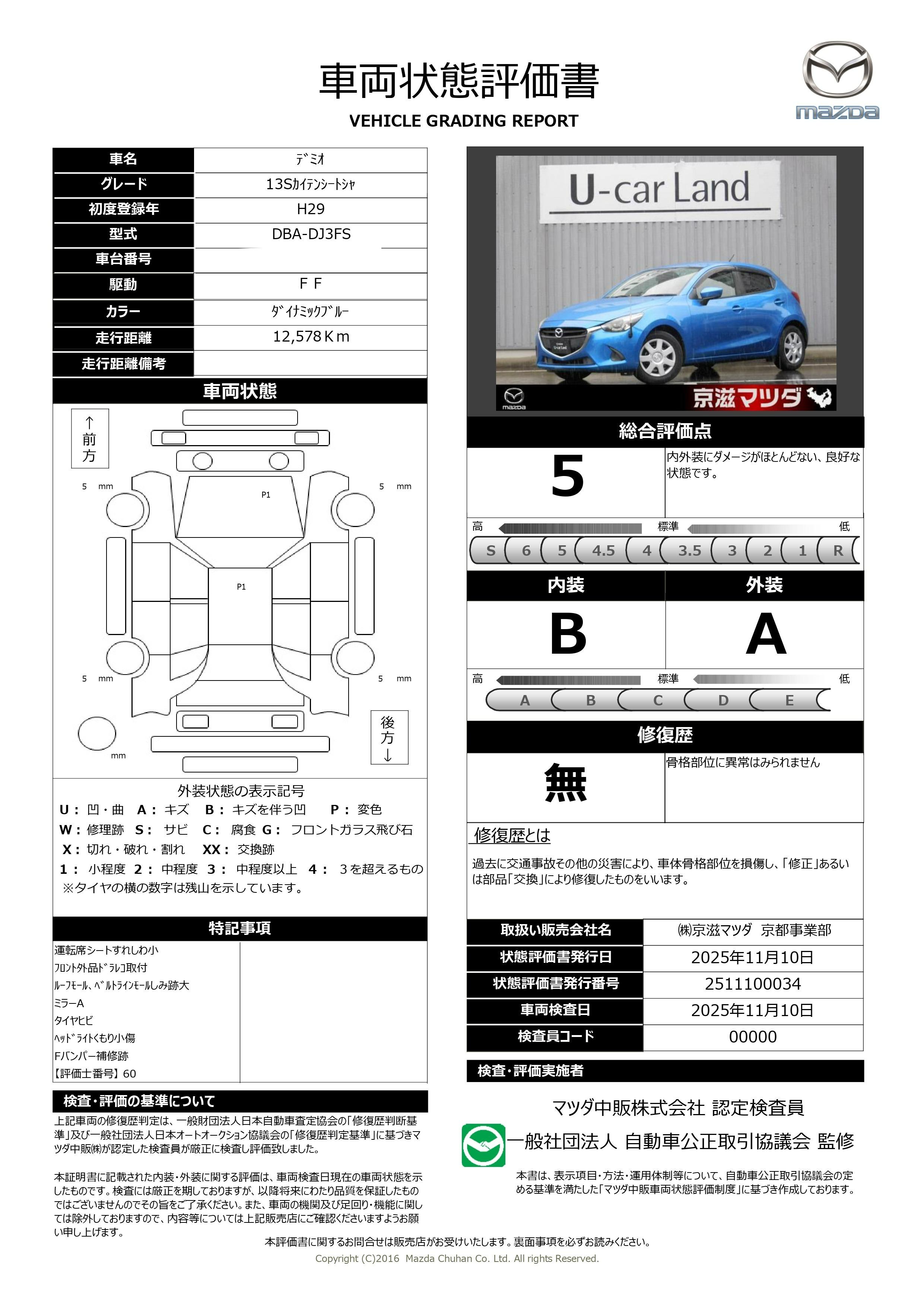 | 車両状態評価書 | ※クリックすると開きます![]() |