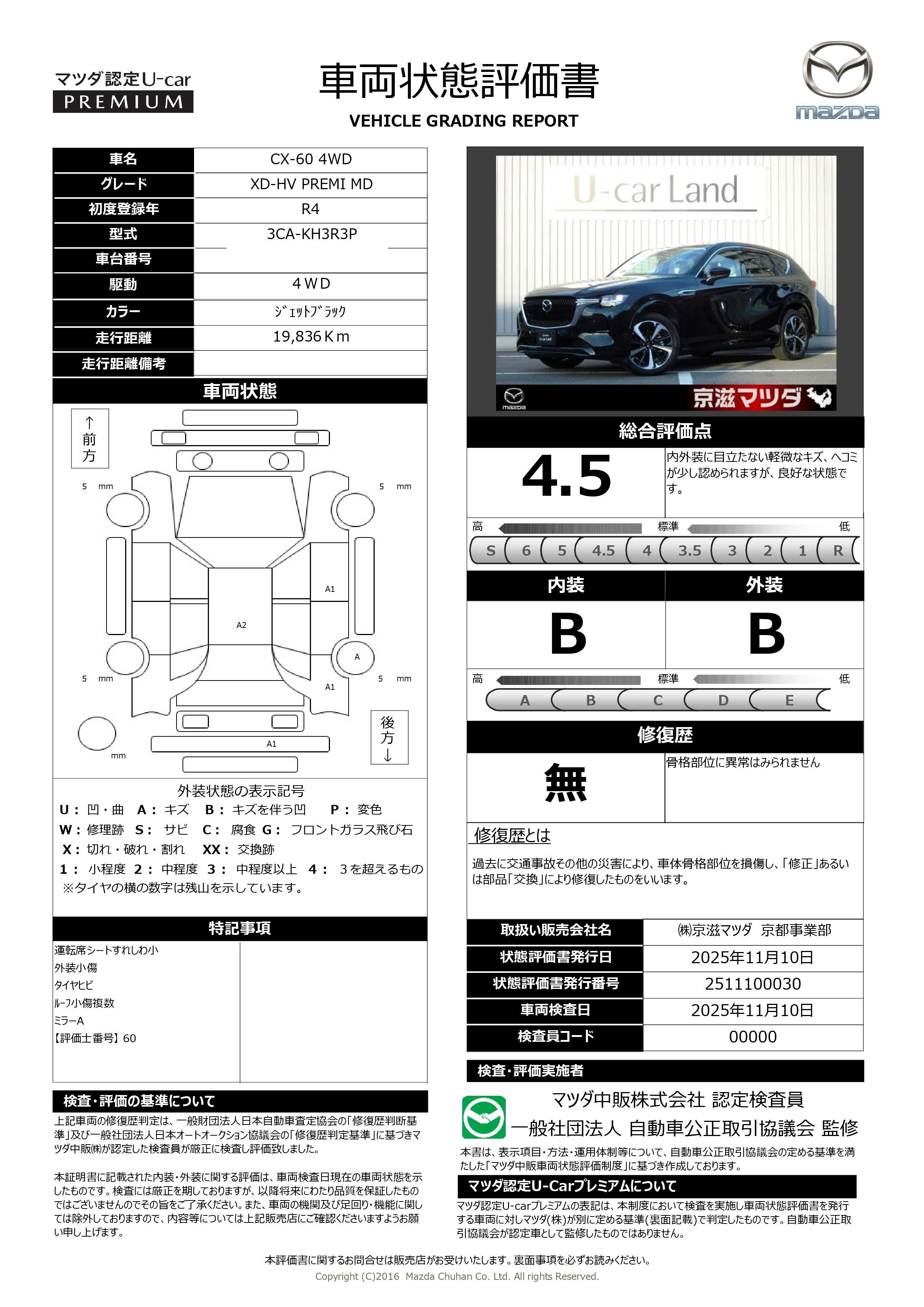 | 車両状態評価書 | ※クリックすると開きます![]() |